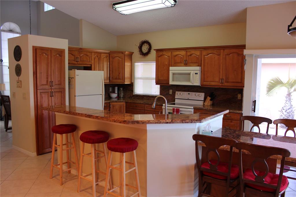 Original owners have maintained and enjoyed this home. Eat in Kitchen beautifully remodeled with granite counter and table top. Newer appliances. Accordian storm shutters and hurricane approved front doors and garage door. Great open floor plan with master bedroom on ground floor and three bedrooms upstairs. Oversized wrap around patio makes outdoor entertaining easy while enjoying relaxing lake view. Home is on a very quiet cul-de-sac. Easy to show. See broker remarks. Sellers relocating and willing to leave furniture and other items at no cost to buyer if needed.