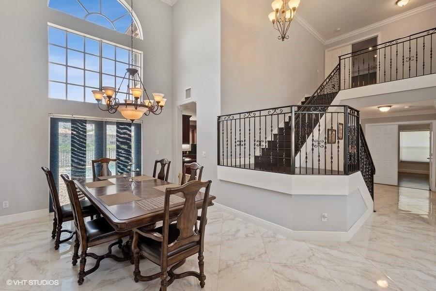 LARGE LAKEFRONT POOL HOME IN GATED CRYSTAL SOUND OF SILVER LAKES. FIVE BEDROOMS PLUS LOFT, THREE FULL BATHROOMS, THREE CAR GARAGE. AMAZING LAKE VIEWS AND SUNSETS FROM KITCHEN, FAMILY ROOM AND FORMAL DINING ROOM AS WELL AS THE LARGE MASTER UPSTAIRS. MASTER HAS SITTING AREA AND TWO LARGE WALK IN CLOSETS. ONE BEDROOM ON FIRST FLOOR. PORCELAIN FLOORS DOWNSTAIRS, WOOD UPSTAIRS. STUNNING IRON STAIRCASE, CROWN MOLDING THROUGH OUT, GRAINITE COUNTERS AND STAINLESS STEEL APPLIANCES. ENJOY LAKEFRONT LIVING RIGHT IN YOUR BACKYARD RELAXING OR ENTERTAINING AROUND THE NEWLY RESURFACED POOL WITH TRAVERTINE PAVERS! IMPACT WINDOWS, GARAGE DOORS AND ENTRY DOORS DOWNSTAIRS. ACCORDIAN SHUTTERS UPSTAIRS. NEW WASHER, DRYER, DISHWASHER. GREAT LOCATION TO SCHOOLS, SHOPPING AND RESTAURANTS.