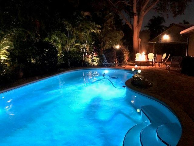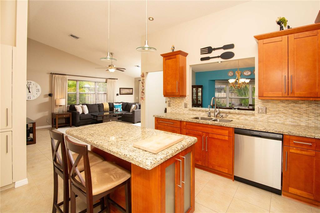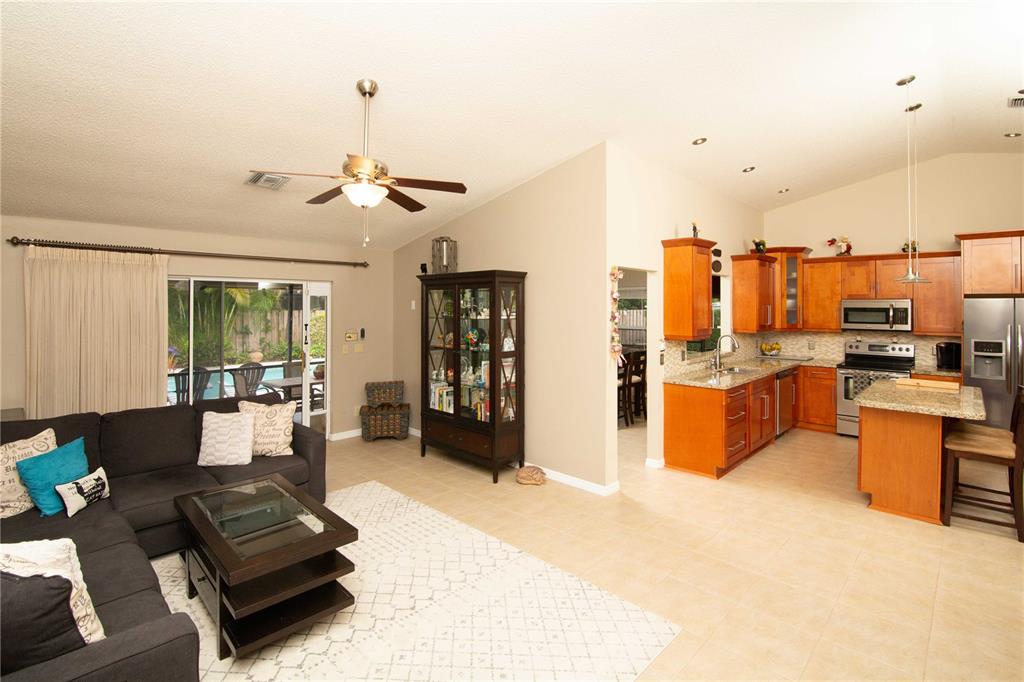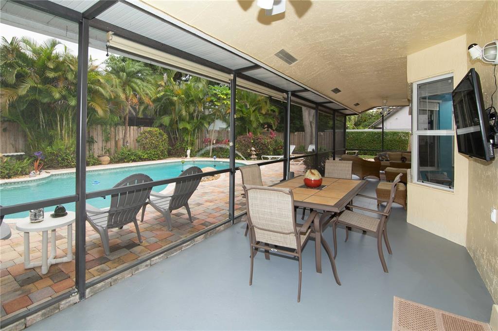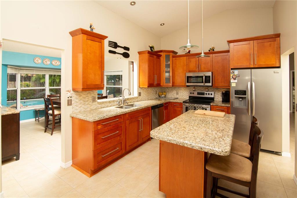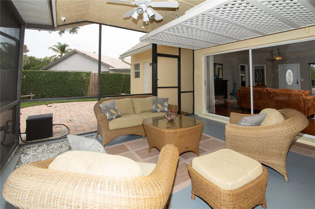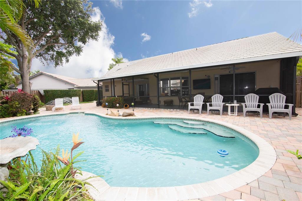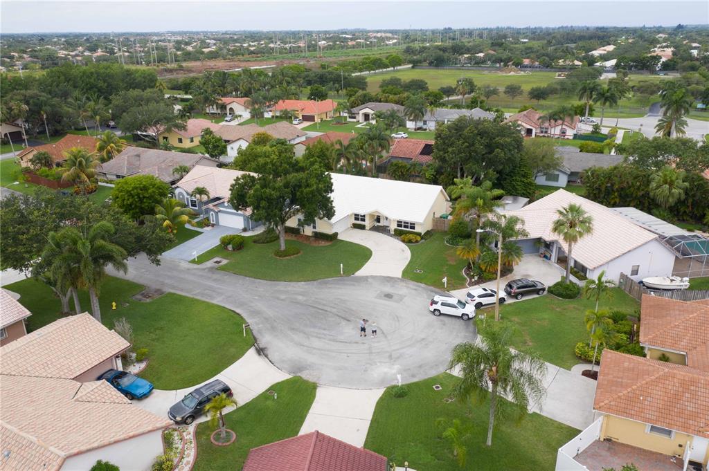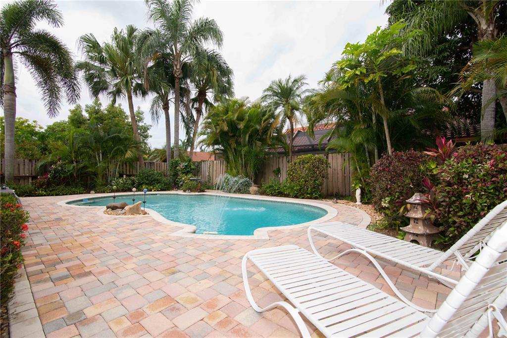 Beautiful well maintained home on a culdesac in a very desirable West Davie community! Open floor plan, vaulted ceilings throughout home. Upgraded kitchen and bathrooms with wood cabinets, granite counter tops, tiled back splash, tiled and laminate flooring, kitchen opens to family room, formal dining room, walk-in closet, large roofed screened patio, perfect for entertaining guests. Enjoy a cabana style master bathroom which opens to pool area; sky light in master bathroom. concrete paver pool deck with lush landscaping, landscape lighting, privacy fence and fire pit, sprinkler system with separate water meter. Security camera system. All "A" rated schools, close to Cinemark movie theater, dining and shopping. Easy access to I-75, I-595, Turnpike and Sawgrass Expressway.