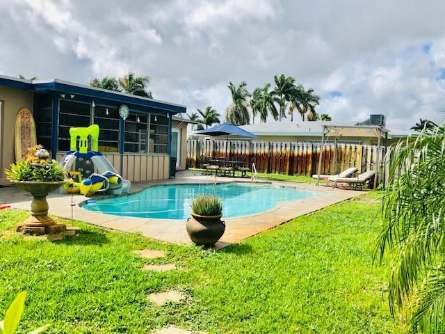 beautiful pool home with one car garage, in a great area house in beautiful condition, open area , great outside space.