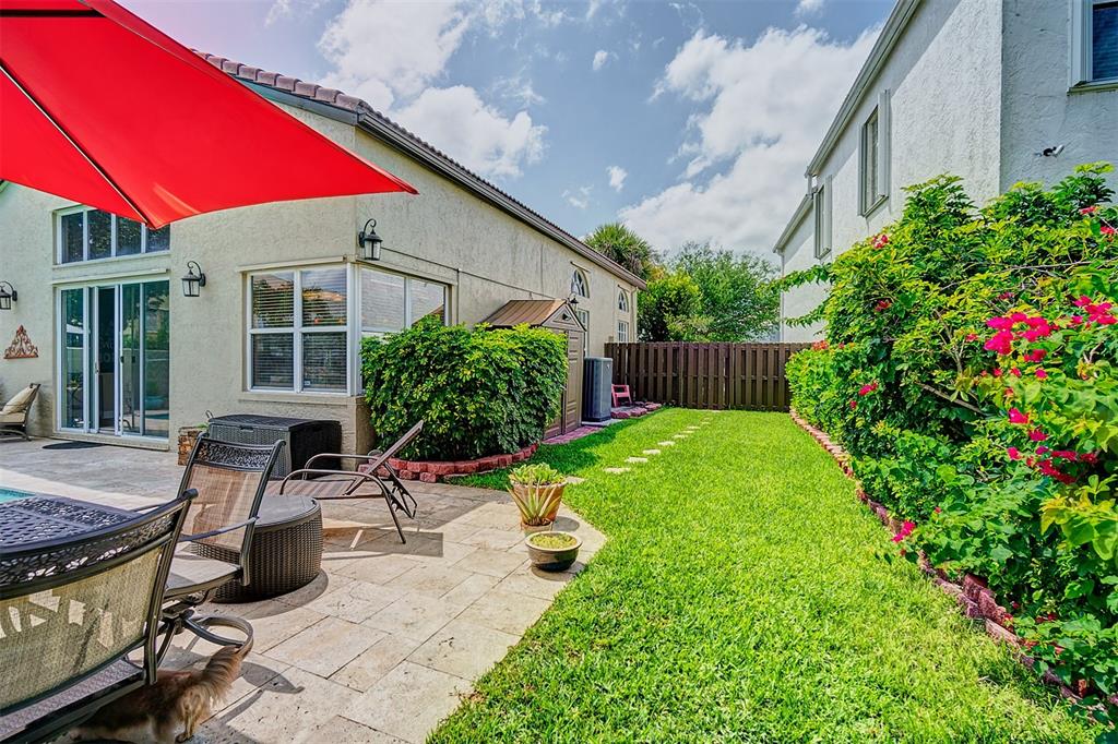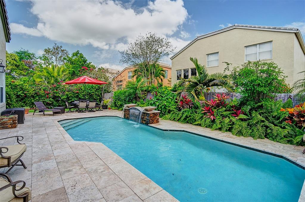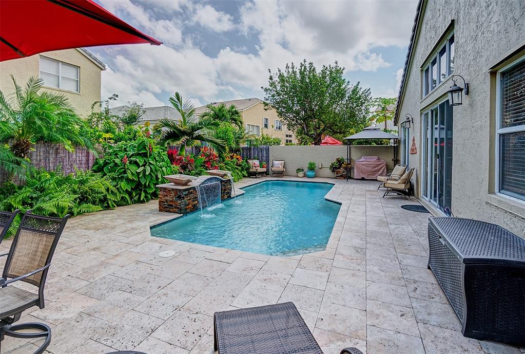 Don't miss this rarely available 4 bedroom 2 and 1/2 bathroom pool home. The gorgeous, lush pool area features serene waterfall and plenty of paver deck space, perfect for entertaining. Pool pump is only 6 months old. Master bedroom has a slider that leads to the pool and large walk in closet. 3 bedrooms are upstairs, 1 is currently being used as an office. The kitchen boasts granite counter top with an island. The AC, washer and dryer are all only 3 years old. Front door has keyless entry. The home has a wired alarm system and smoke detectors. Price is firm. Seller is looking for a 30 day close and up to 60 day option for leaseback.