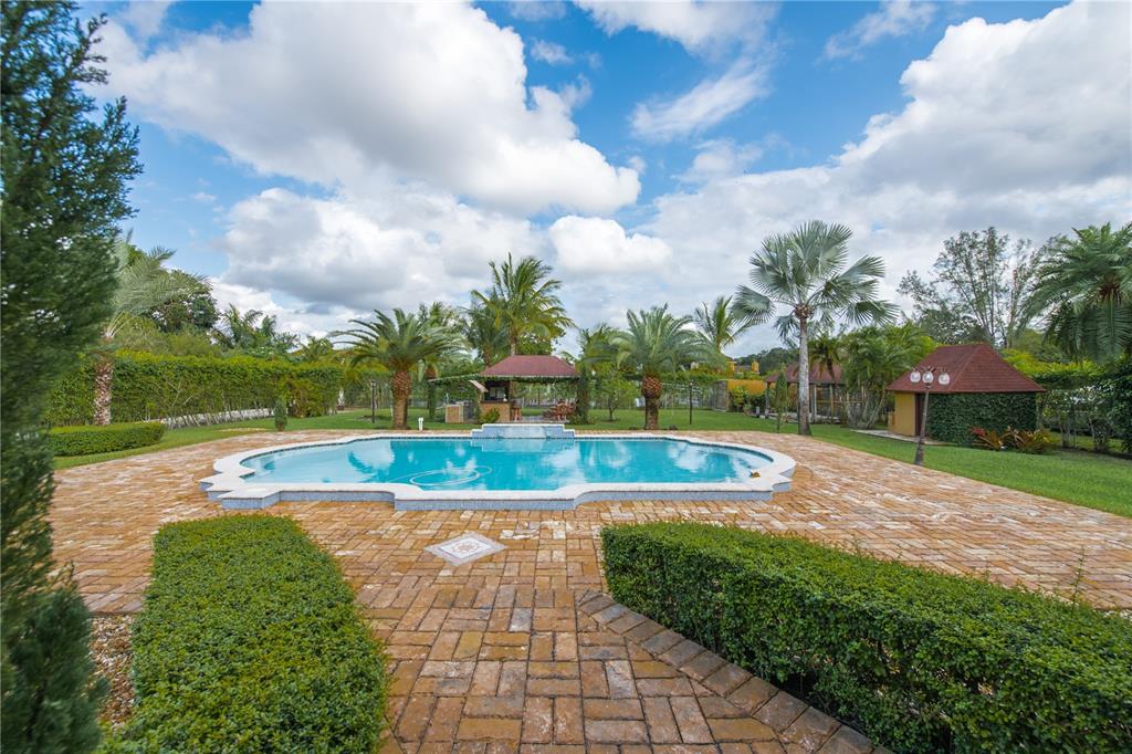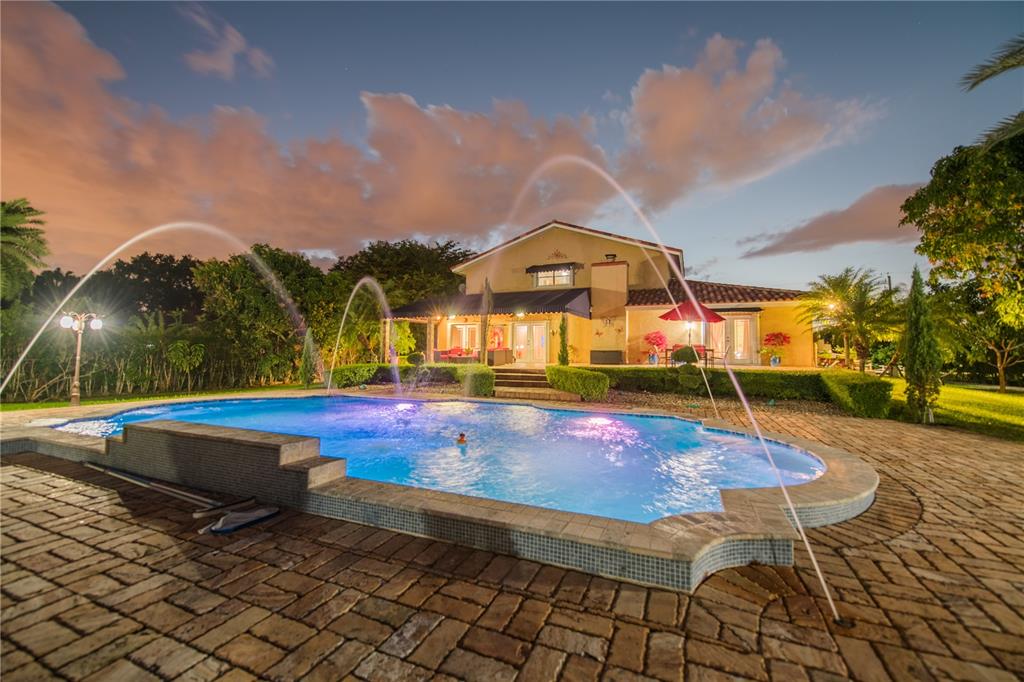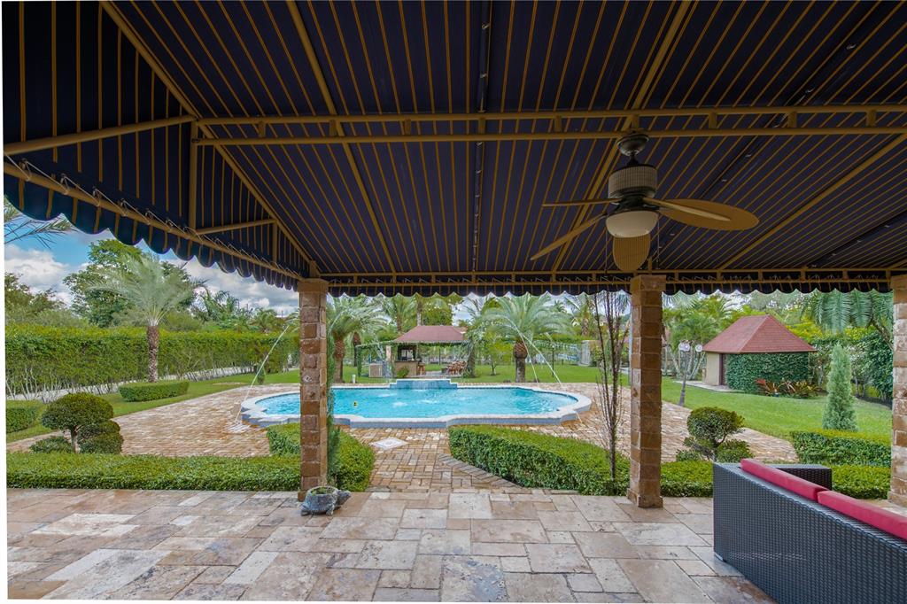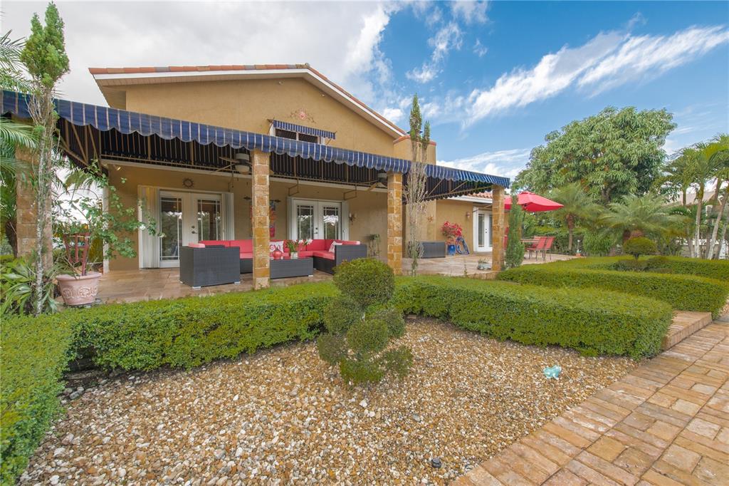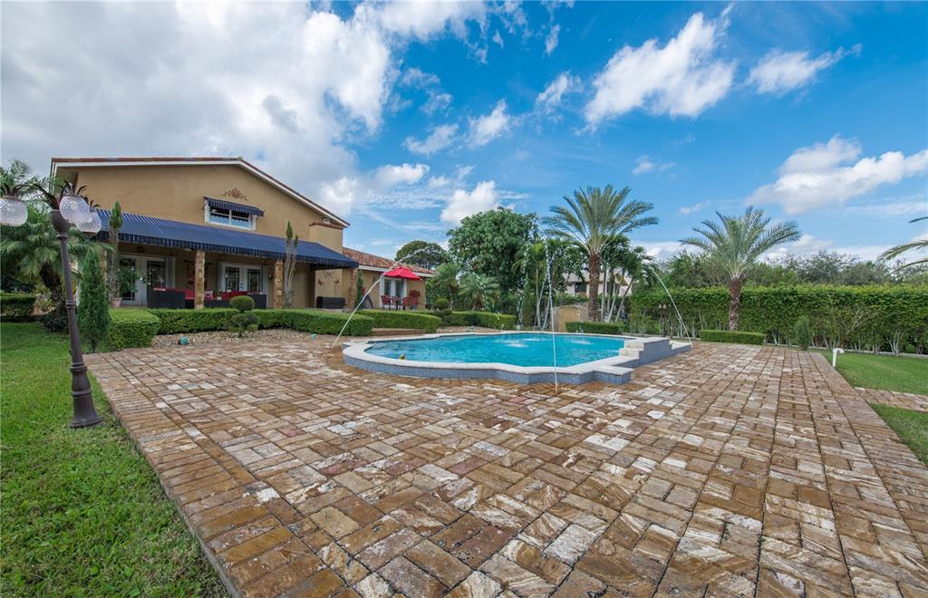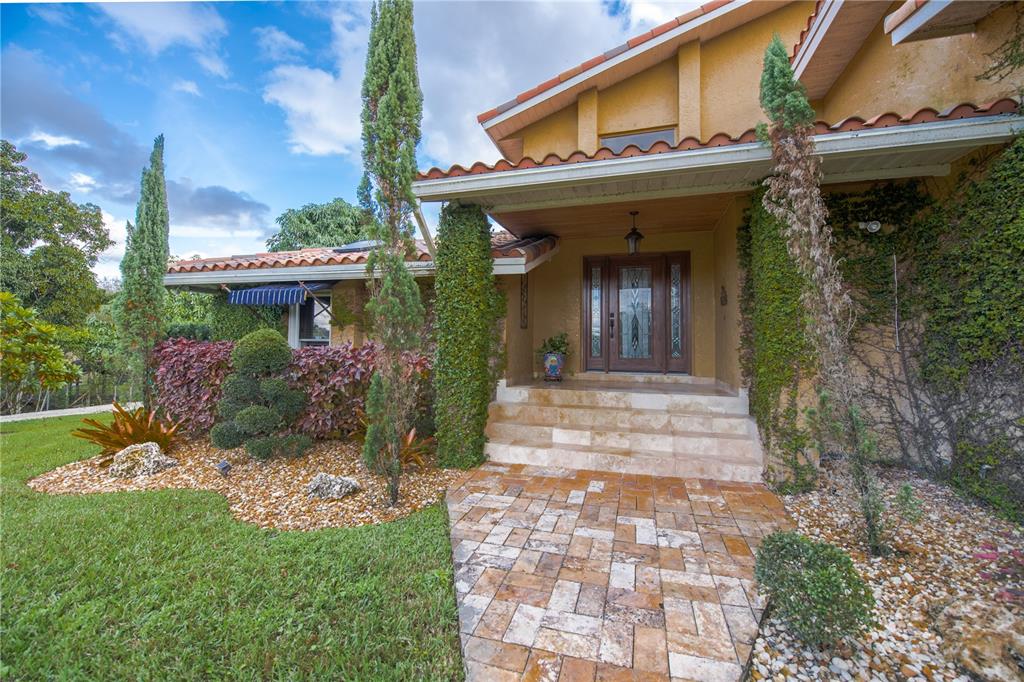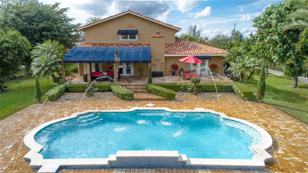 Spectacular and exclusive 4/3.5/pool home with impressive electric gated entrance. Beautiful water fountain and extended driveway can accommodate more than 12 cars. Completely remodeled. Upgraded kitchen with cooking island, wood cabinets, SS appliances and granite countertops. new bathrooms, new roof, new a/c unit, new electric water heater, travertine marble floors throughout the entire house. Enjoy the amazing fully fenced backyard with lush landscaping including fruit trees, travertine pavers, oversized salt water pool (18x36) with Jacuzzi in the entire pool, outdoor kitchen and new cabana bath.