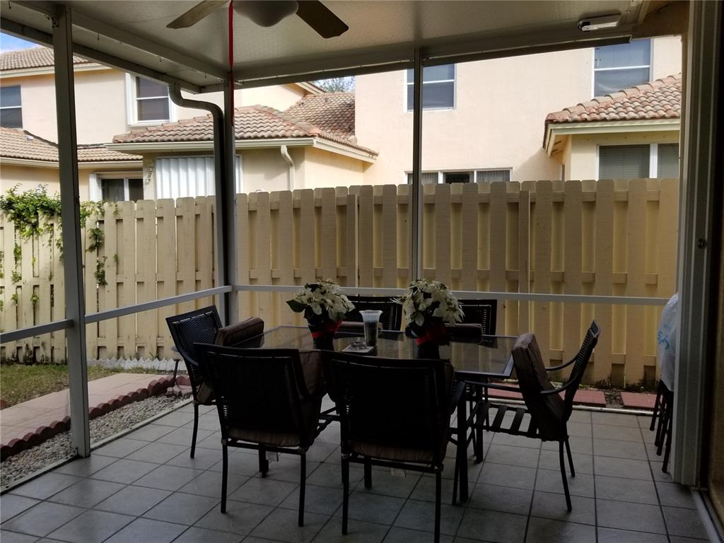 MINT MINT MINT Private Corner Townhome almost feels like a single family home with all its privacy. This home boats a separated living room & dining room, Covered huge Patio with a huge fenced in backyard manicured with a Mango Tree . Plenty of space to BBQ and entertain guests comfortably and privately which is unheard off in most Townhome Settings, Master bedroom on the first floor is another PLUS and 2 other bedrooms upstairs; home is equipped with Accordion Shutters for added Hurricane Security, in 25 minutes. Secured and Gated Community with pool. Right in the heart of Pembroke Falls and close to Pembroke Lakes Mall/Pembroke Gardens for Dinning, Entertainment and Shopping. Easy to show.