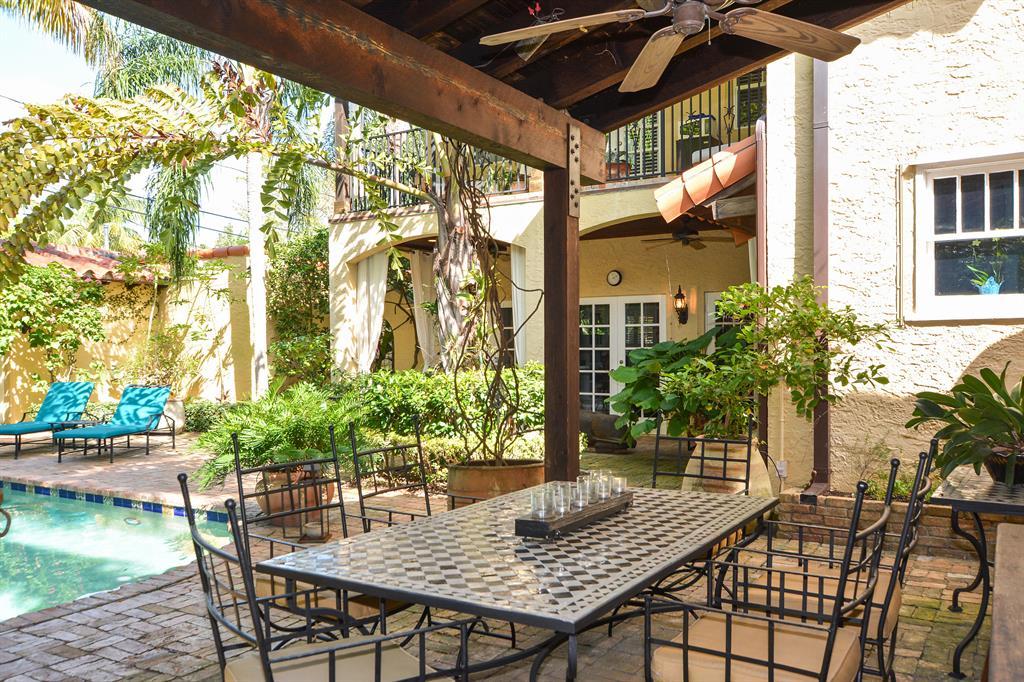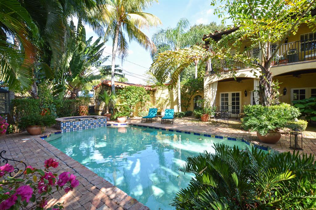 Absolutely gorgeous, renovated to perfection! 2 Story 4BR/3bth Mediterranean dream home on beautiful tree lined street in Historic Old Northwood with pool and detached guest cottage. All the original architectural details restored, plus a seamless 2 story addition. Palm trees and a Chicago Brick walkway lead to a Pecky Cypress door opening to gorgeous designer interiors, gleaming hardwood floors, stunning living room with Mizner style fireplace, 19 foot formal dining Room with tray ceiling, sunroom with arched windows & plantation shutters, large family room addition with clay tiled floors, custom book cases & three sets of French doors opening to a cypress ceiling patio with Chicago Brick floors flowing to the heated pool with spa waterfall and private ''tropical oasis'' back yard.