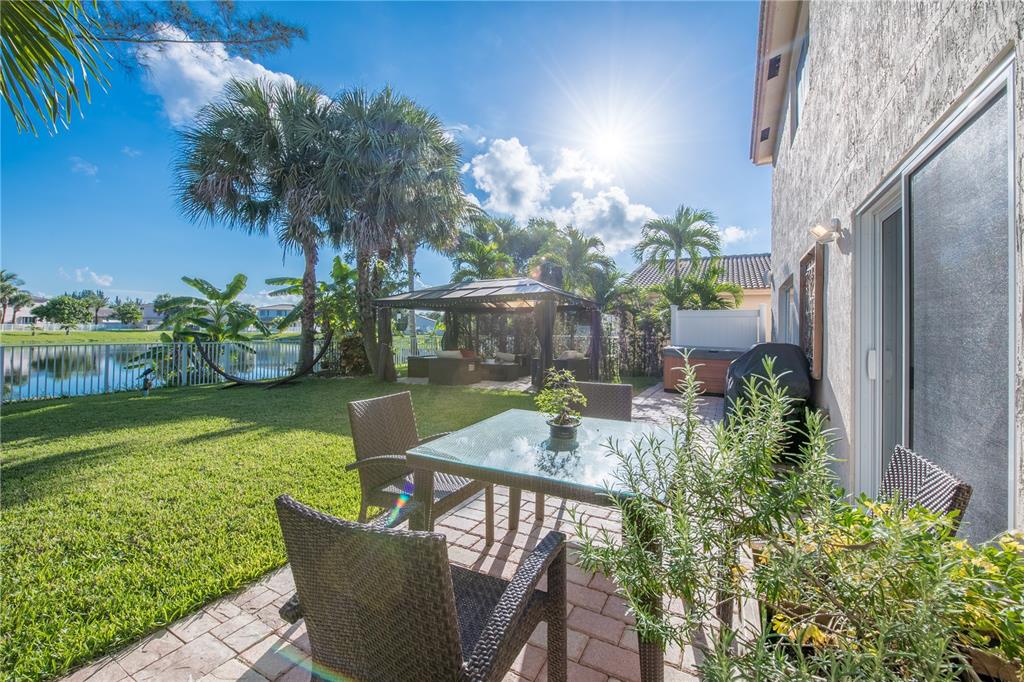 Gorgeous two story house with 4bedrooms/2.5 baths and small loft! Upgraded kitchen with solid wood cabinets, porcelain neolith countertops, backsplash and SS appliances. Tile and new laminate wood floors throughout the entire house. New impact windows and doors in the entire property. Upgraded bathrooms. New LG washer and dryer, new water heater, 2015 A/C unit, security cameras, nest thermostat, new sprinkler pump. Projector and TV screen in the living room will stay. Spacious backyard with plenty space for a pool. gazebo will stay.