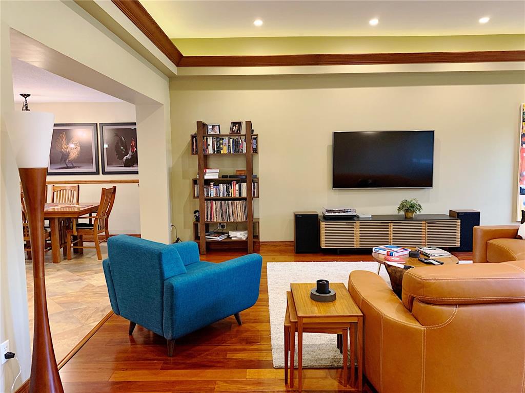 This home is a one of a kind find! Substantially Remodeled with top of the line upgrades throughout. Custom Chef-Inspired Kitchen, Expanded Great room and Master Suite boast high ceilings Hardwood floors and upgraded lighting. Master Suite has two walk in closets, Dual sink counters, Jacuzzi tub and a Rain shower that is out of this world! Second Master also has a Walk-in Closet, beautifully upgraded bath and access to the pool. Bonus area off the kitchen with built-ins galore and a Cabana Bath. Stainless Steel Kitchen Aid Appliances with Oversized Kitchenaid fridge and double ovens. Two Car garage with AC and tons of built-in Storage and utility room. Automatic Gate in rear for secured Slab parking for RV or Boat separate from pool area. Underground Utilities & Tankless Gas Water Heater