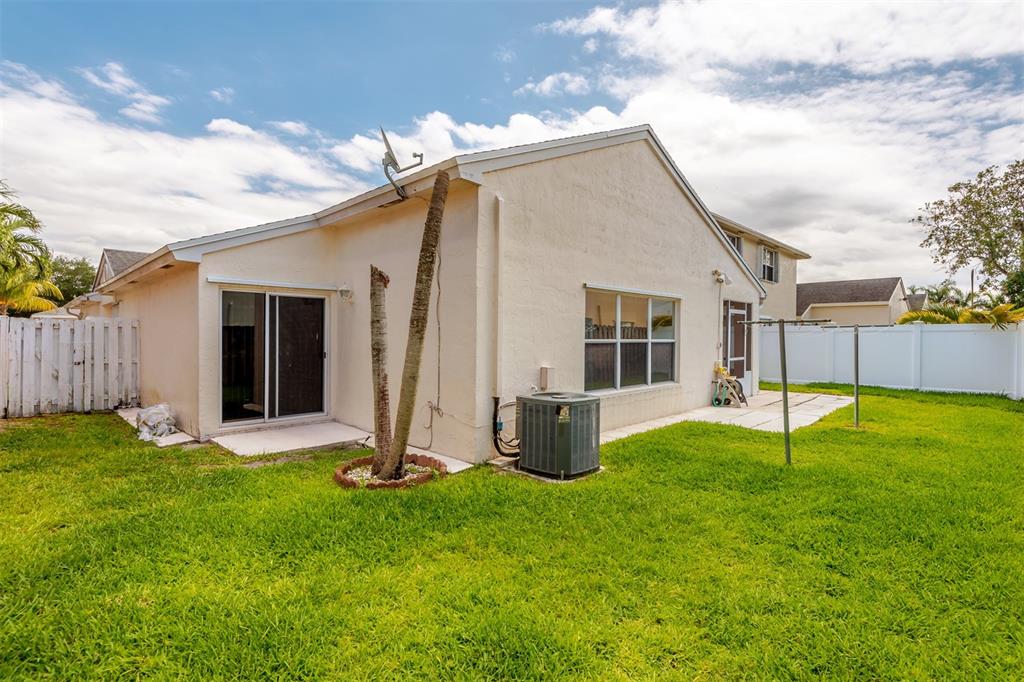 PRICED TO SELL! An open floor plan and high ceilings invite you into this 3/2 home with a 2 car garage and a screen enclosed patio which has been tiled. The fenced yard and upgraded driveway/entryway are just the beginning. Kitchen cabinets, air conditioner, dryer, and tank-less water heater have been replaced and both bathrooms were upgraded. Hurricane panels and reinforced garage door make this home secure. Walking distance to community pool, spa, and playground plus 2 city parks. Mr. and Mrs. Clean live in this house that was built for entertaining with great space and flow plus you can relax in the quiet of your solid built home. Great schools, community front lawn care, HOA pressure cleans sidewalk, and a maintained community make this a wonderful place to raise a family.