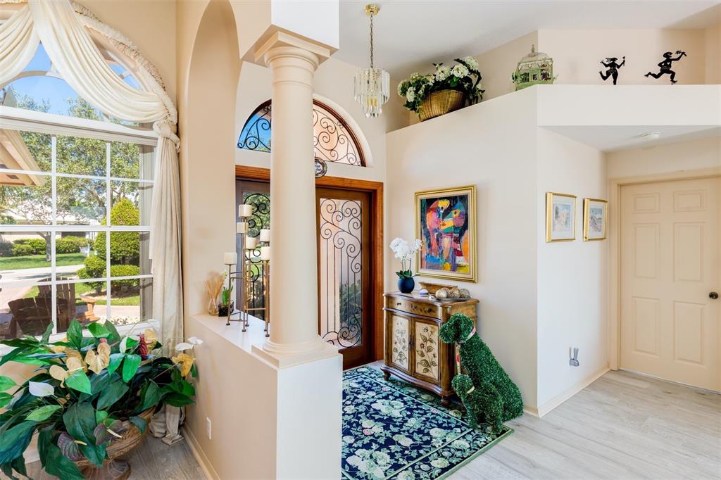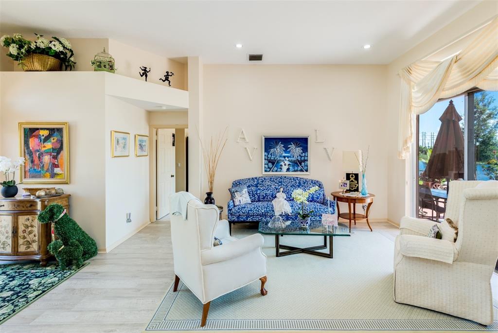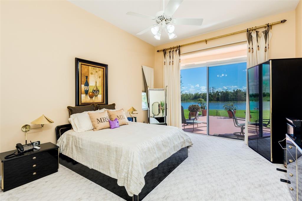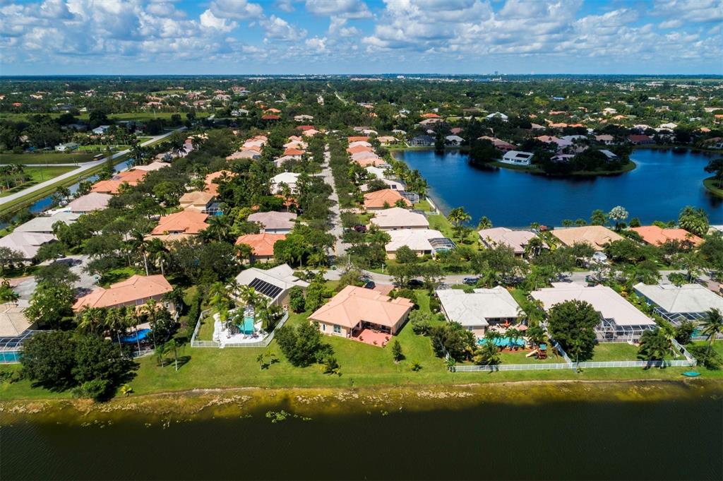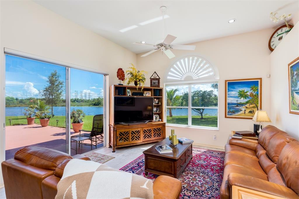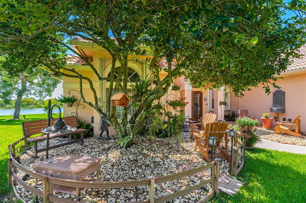 Elegant customized home on oversized 1/3 pie shaped acre lot on waterfront preserve in gated, luxe community of Estates of Stirling Lakes. Open & inviting layout w volume ceilings, wood laminate flooring in the main living areas, formal dining & living opens to huge expanded family room & eat-in kitchen. Kitchen features stainless appliances, granite, extended wood cabinetry & pantry. Huge Master suite & bath w walk-in closets has direct water view. Great triple split bedroom layout. Extras include accordion hurricane shutters, newer AC, impeccably maintained tropically landscaped grounds, fountains, 3 car garage. Small community, all homes on 90ft wide minimum lots, low HOA, close to top rated schools.