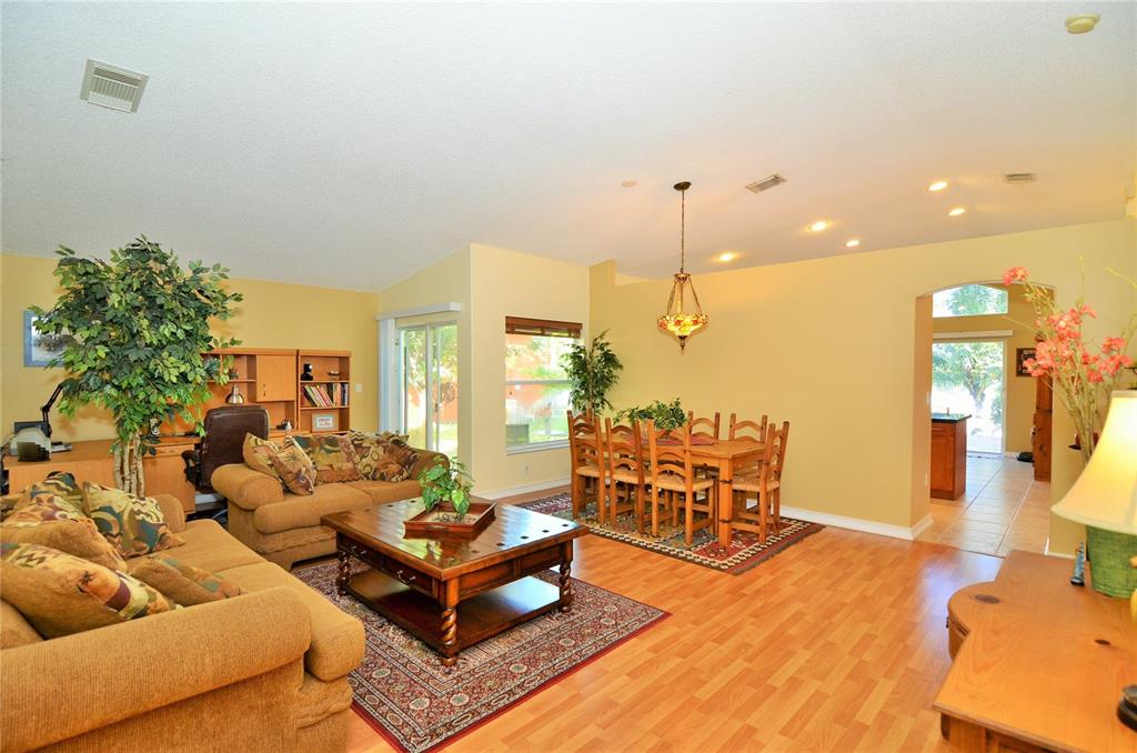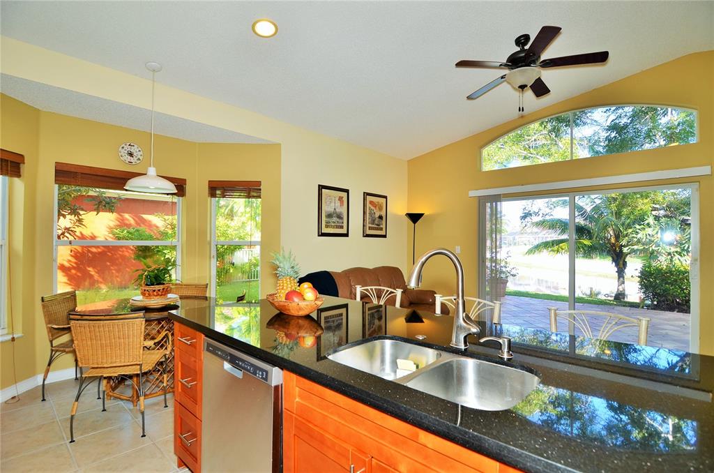 Desirable one-story home with 3 bedrooms and 2 baths. Beautiful remodeled kitchen with SS appliances, wood cabinets, back splash and granite countertops. New H.E. Rheem Air Conditioner, new tank-less water heater, tile in main areas and laminate wooden floors in all bedrooms. Beautiful backyard with patio pavers, lake view, and fruit trees.