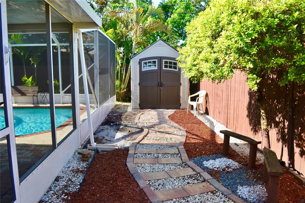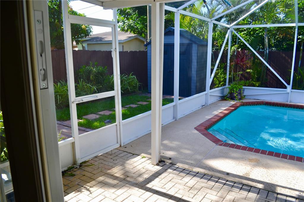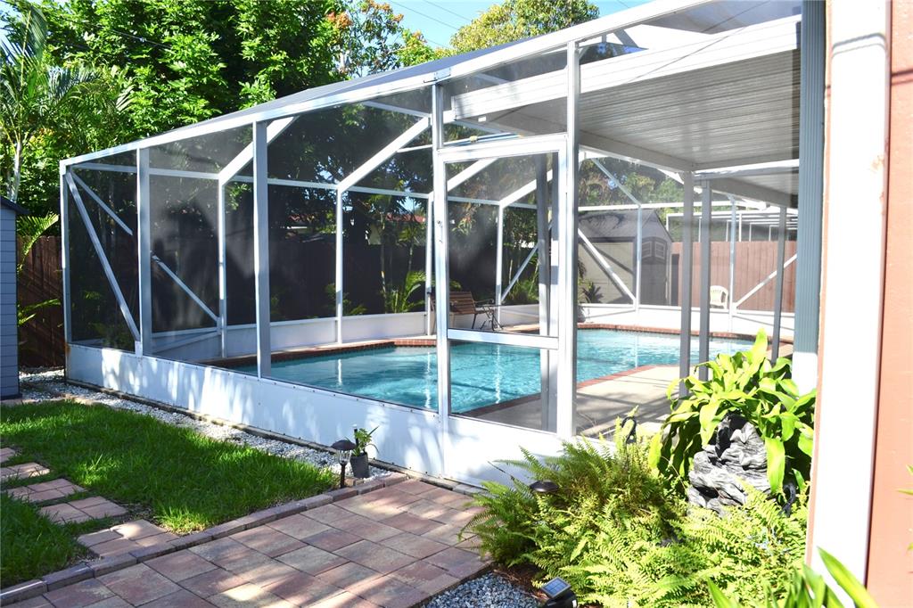Beautiful Single family home in east Miramar 2 bedroom, 2 bath with pool, This home features stainless steel kitchen appliances, tile floors , updated bathrooms, screened in pool with bar area great for entertaining. Brick pavers in back yard with 2 sheds for storage ,sprinkler system. Big circular driveway with covered porch parking. It also has shutters through out for hurricane .
