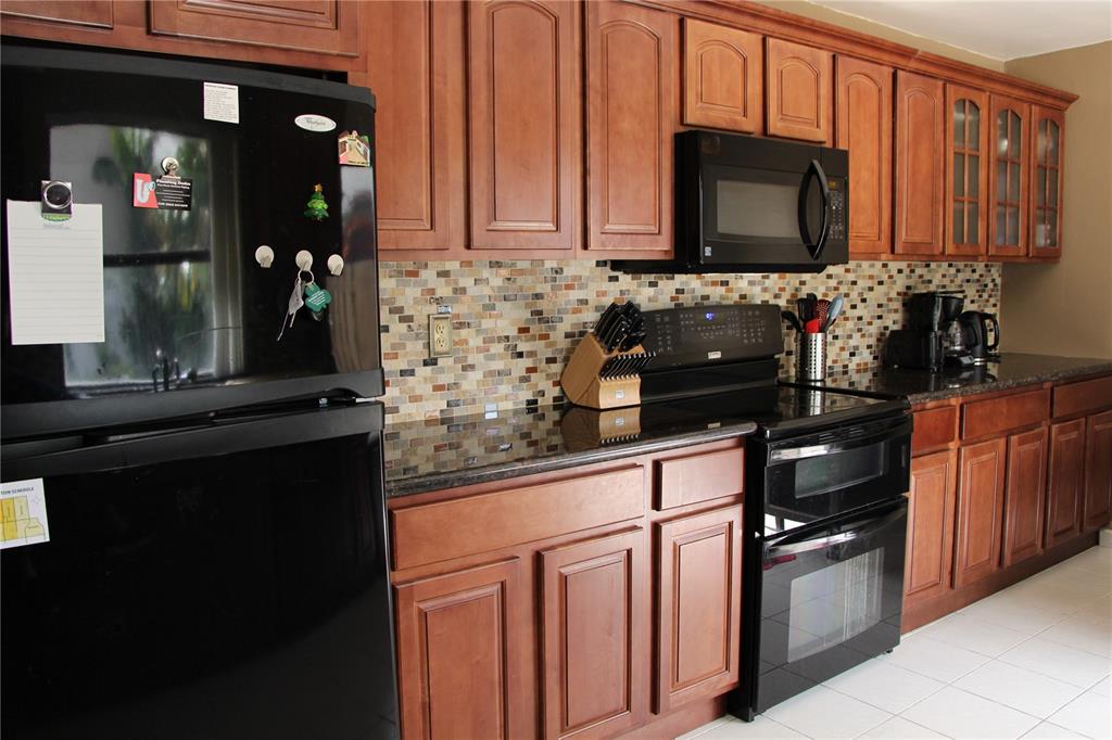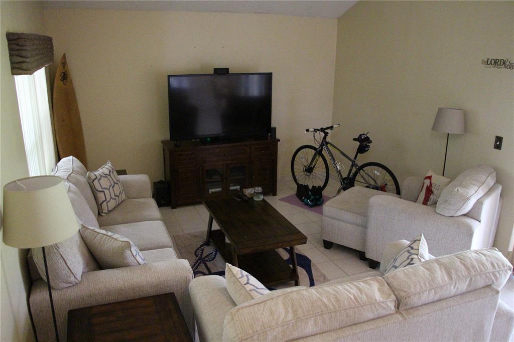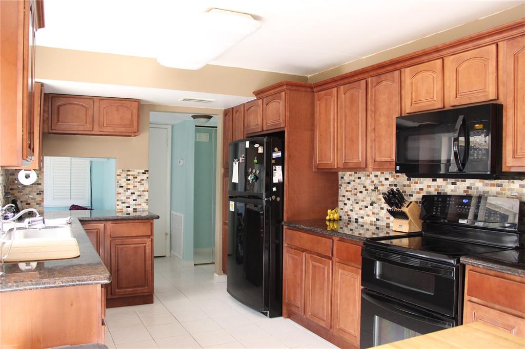 Great Rock Creek Family Home in Tierra Vista on Green Belt! New Roof being put on before closing! Two patios, one roofed and screened with stamped concrete floor, the other open patio area with pavers. Updated Kitchen with wood cabinets and Granite counter tops, some crown molding, A/C new in 2015, Tankless water heater, accordion shutters, interior utility room, Tile floors downstairs and wood laminate floors upstairs. All Bedrooms are upstairs.