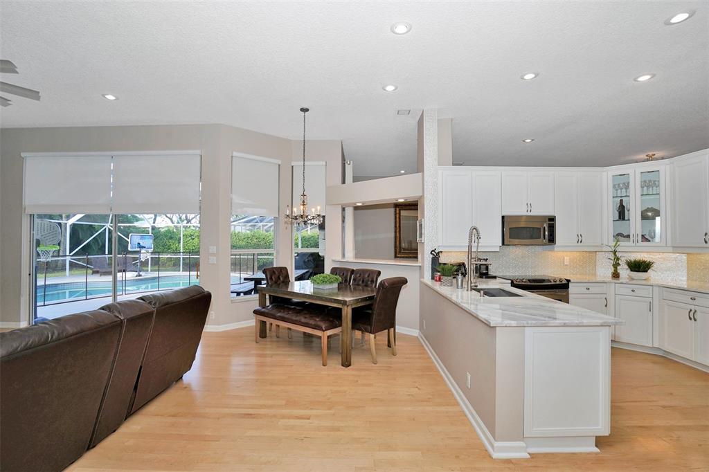 THE LANDINGS 4/3 WITH SCREENED POOL IN A GREAT SUB-DIVISION RECENTLY REDECORATED WITH ALOT OF NEW COMPONETS AND FEATURES. REFINISHED KITCHEN WITH WHITE/GRAY QUARTZITE COUNTER TOP AND A GLASS BACK/SPLASH,COMMERCIAL GRADE FAUCET. REFINISHED GRAY/WHITE ENTERTAINMENT CENTER STAYS. 6 MONTHS OLD-WHITE PULL DOWN SHADES,POOL FILTRATION AND PUMP, CENTRAL A/C., COMMON AREA PAINTED. WOOD FLOORS THROUGHOUT(1.5YRS) ELECTROLUX FRONT LOADING WASHER/DRYER(1.5YRS) ROOF REPLACED 9 YRS AGO NE WGARAGE DOOR OPENER. CHANDELIER IN FOYER AND DINING ROOM STAY.