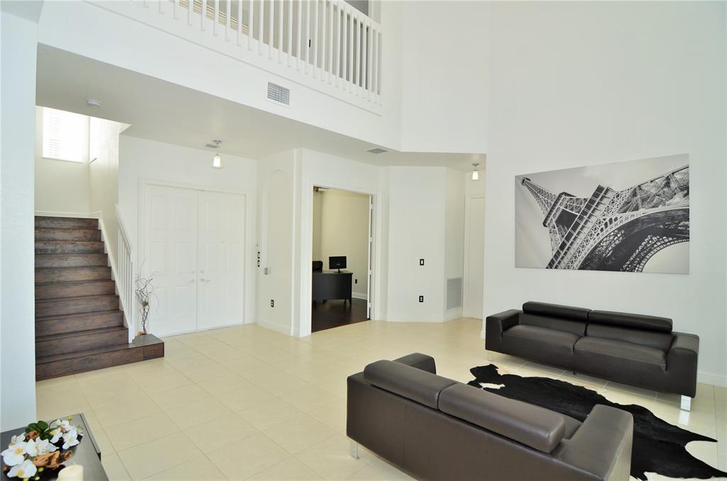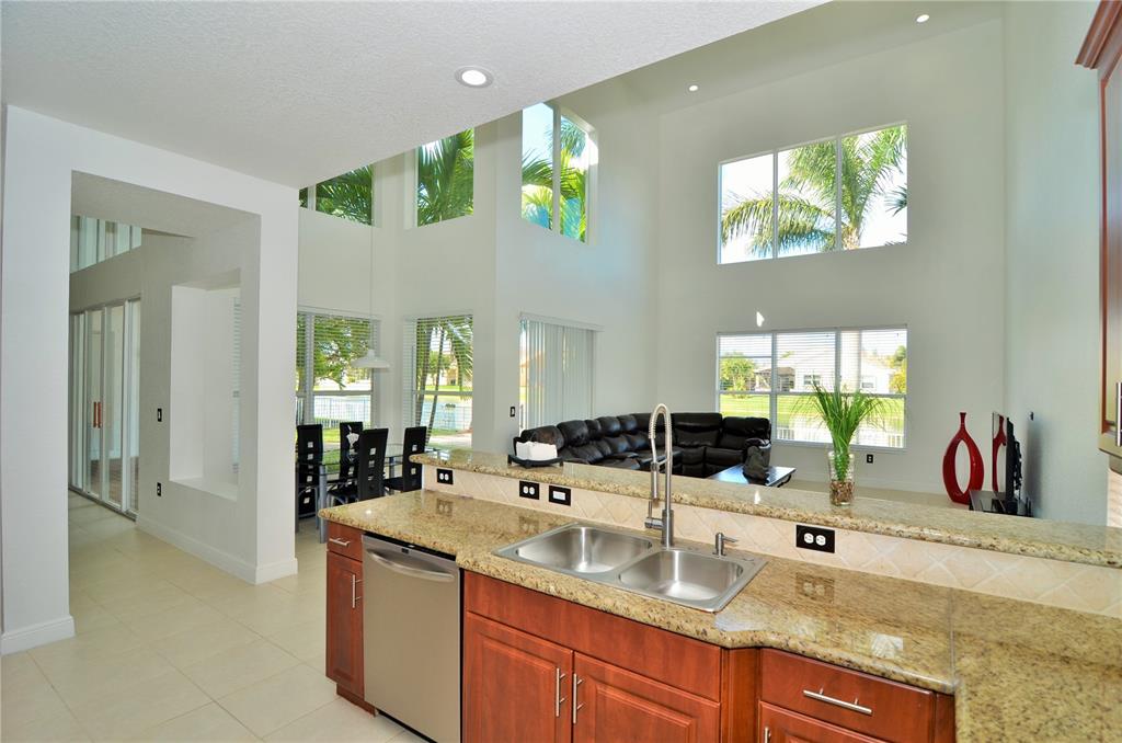 Impeccable and spacious home. Upgraded kitchen with new SS appliances, granite countertops, tile on the first floor and new wood floors upstairs, new washer and dryer, new water heater, freshly painted inside and outside of the property, vaulted ceilings, upgraded bathrooms. One bedroom suite with private bathroom and office on the first floor. Enjoy the backyard with the beautiful lake view.