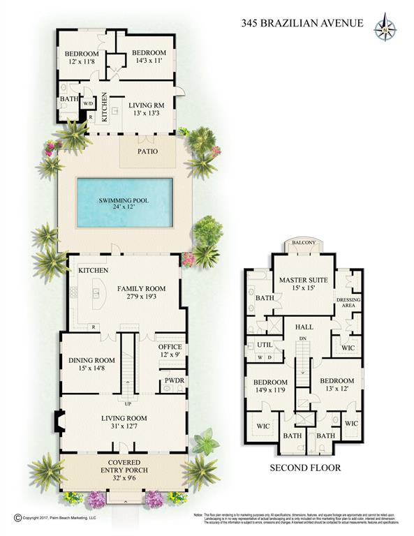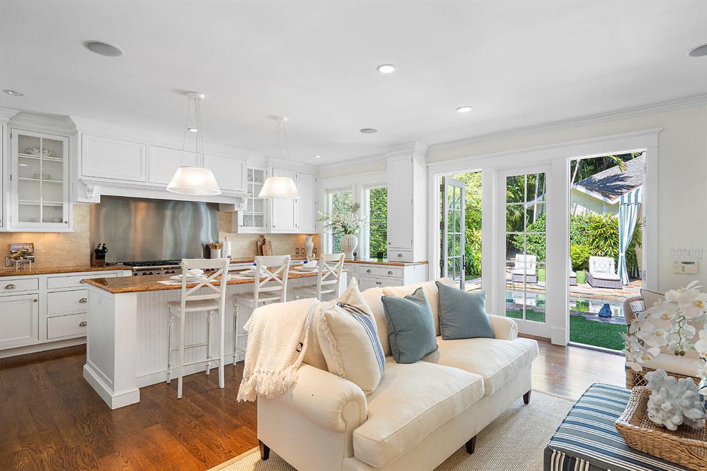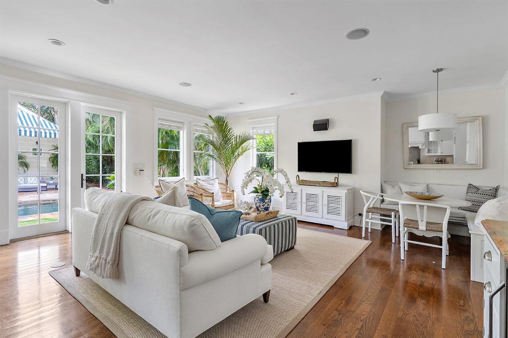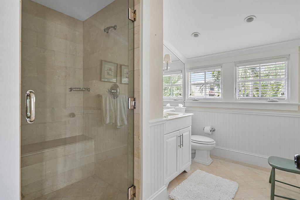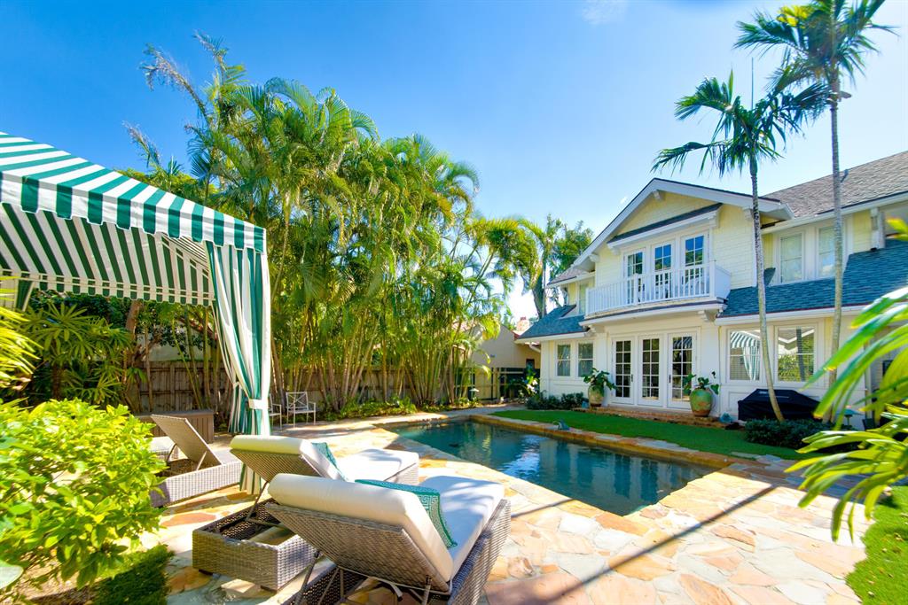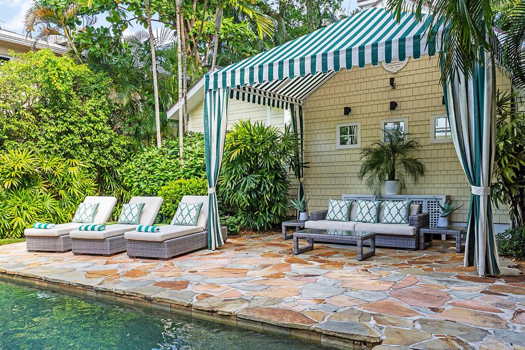 This center of town prime location beach house has been completely reimagined and is ready for immediate move in. Easy living in the main house while your guests enjoy the like new guest house complete with a kitchen, laundry, 2 bedrooms and a bath. Natural light fills the home throughout with beautiful new Impact glass windows and doors. Each bedroom has en suite baths and large closets. The Kitchen, open to the family room and pool, is complete with custom cabinets, granite counter tops, and Wolf gas range. All of this on a deep lot with a tropical pool and garden separating the main house from the guest house. Walk to restaurants, beaches, Brazilian docks, dog park, lake trail, the Brazilian Court and Worth Avenue!