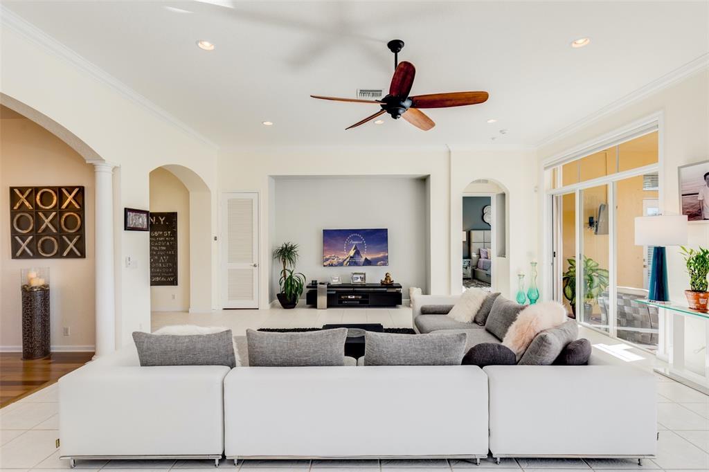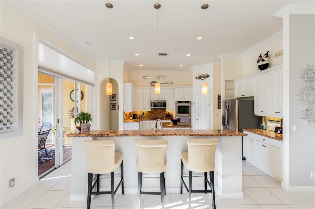 Elegant wide lakefront pool home on over 1/2 acre lot in gated, luxe community of Hibbs Grove. This is the largest one story plan built. Open & inviting w volume ceilings, formal living & dining, huge family room & eat-in kitchen overlooks the 41ft covered patio w motorized retractable screens & extended sunshade awnings, pool & lake. Kitchen features newer stainless appliances, granite,extended white wood cabinets & walk-in pantry. Huge Master suite and bath w walk-in closets has direct pool & water view. Great bedroom layout w 4 bedrooms & 2 adjacent baths. Separate 6th bedroom/den just needs closet door. Extras include accordion hurricane shutters, built-in closet systems. Tropically landscaped grounds, oversized 3 car garage.HOA includes lawn care, cable, alarm