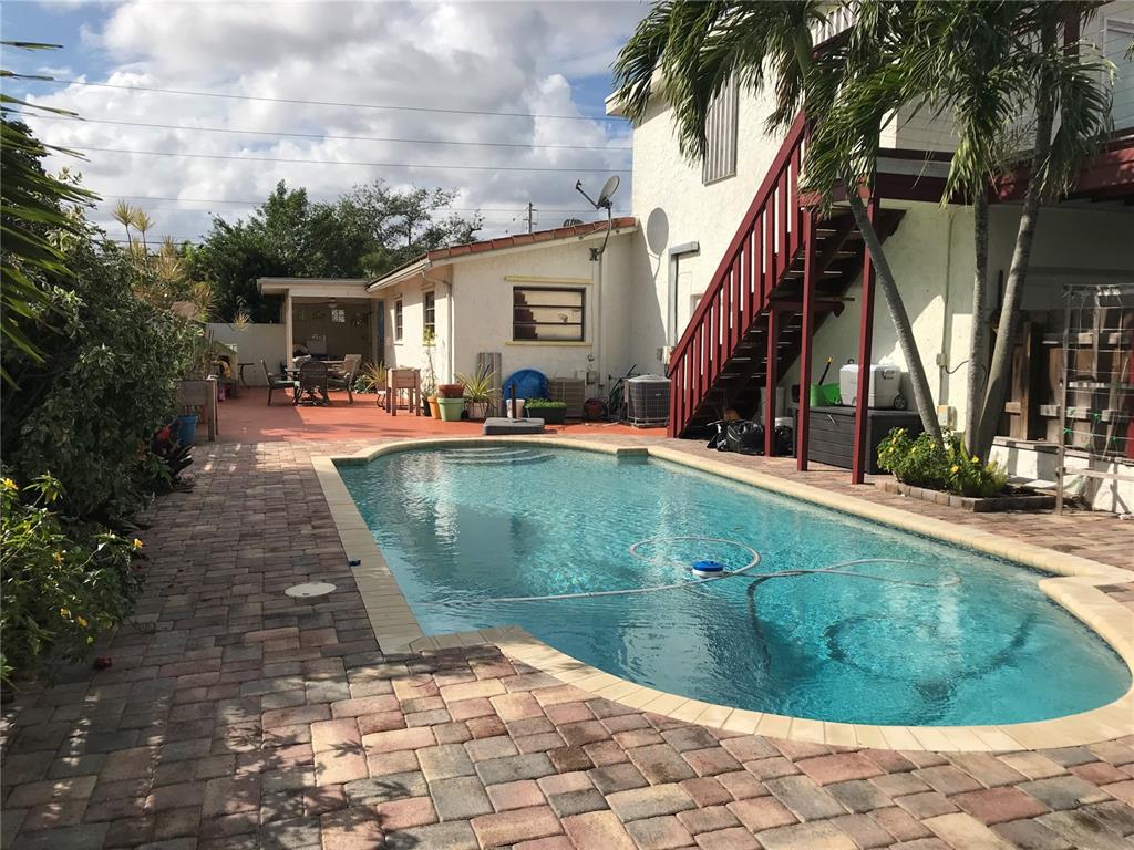 This charming home is one of the largest in Hollywood Hills! Upon entering the home you'll admire the beautifully remodeled kitchen with new stainless steel appliances. In addition to the living room and formal dining room, you will find three bedrooms downstairs. Upstairs is the bonus room that can be used as a fourth bedroom, office or extra den. This rare addition has its own central AC, 1/2 bath and balcony. This home also features a huge fenced patio offering total privacy. Great for outdoor entertaining or BBQs and topped off with a newly resurfaced salt water pool ready to cool you off. Other amenities include tile and laminate flooring downstairs with hardwood upstairs, circular driveway in the front and garage in the back, a solar water heater and a Nest thermostat.