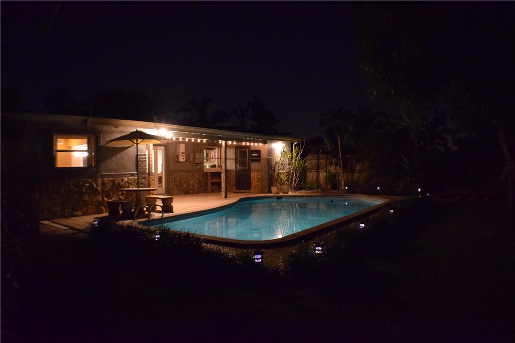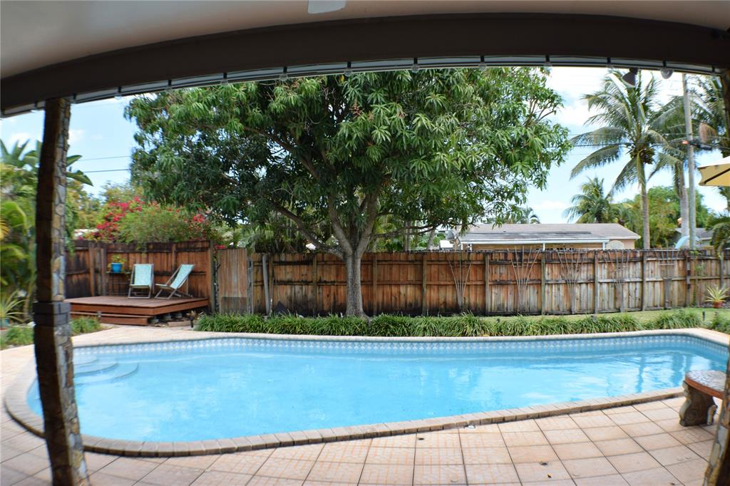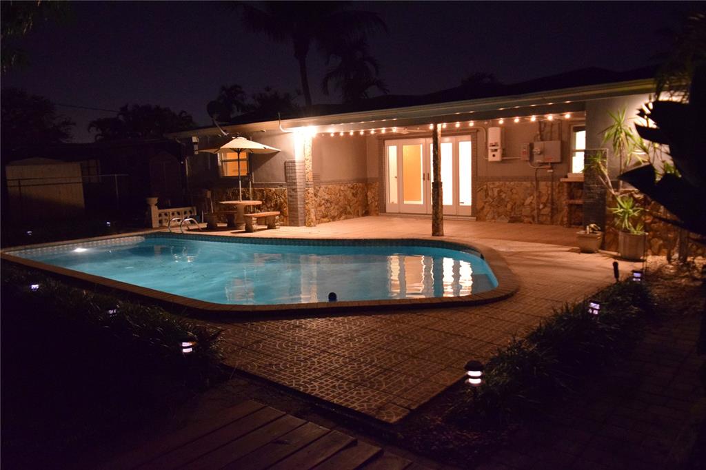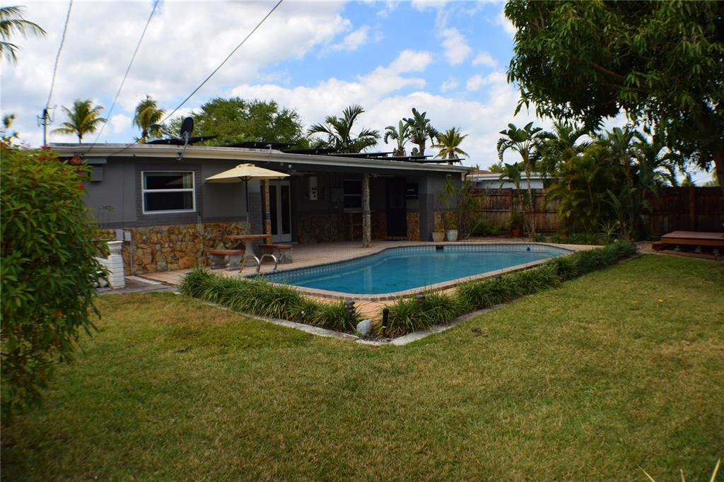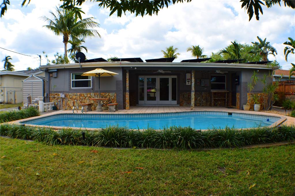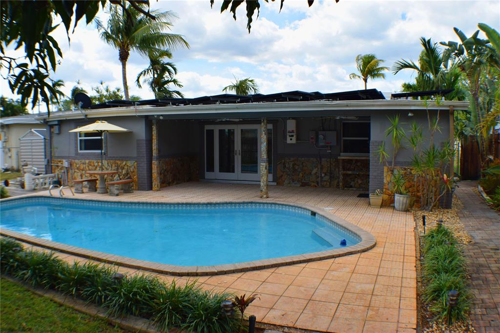 Solar powered home in the heart of Hollywood Hills. 42 solar panels that produce electricity with a transferable warranty. Two large living spaces and 4 bedrooms with a split floorplan. This home has it all. Gas appliances, pool, wooden deck, covered patio space, sprinkler system, stainless appliances, tile roof, newer 4-ton AC, glass tile shower, termite warranty, hurricane shutters and more. All this in a great location on a quiet street convenient to Memorial Regional, major roadways, Tri-rail, shopping, dining and houses of worship. *rain-barrel does not convey