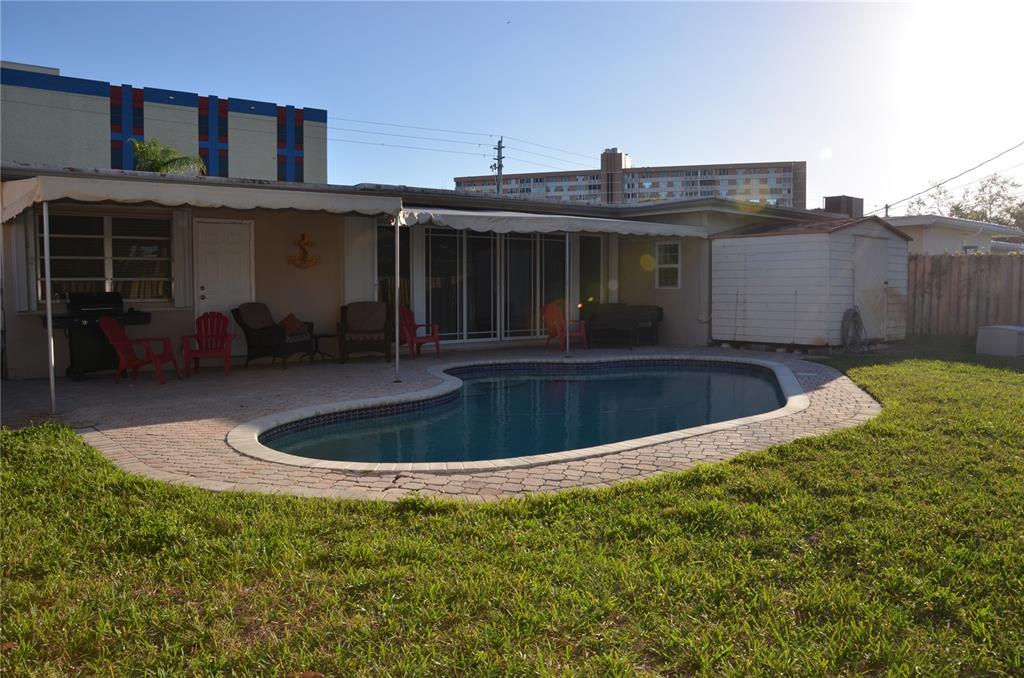 You'll love this updated, spacious 3 bedroom 2 bath home in Hollywood Hills. Many upgrades including kitchen with wood cabinets and Corian counter tops. Ceramic tile throughout main house and laminate flooring in bedrooms. Separate laundry room with Kenmore front loading washer and dryer. New 5-ton a/c will keep you cool in the summer or splash around in the large 17 x 30 pool surrounded by brick pavers, while you BBQ and entertain your friends in the large backyard with wood fence for privacy. This home is close to the beach and everything else Hollywood has to offer.