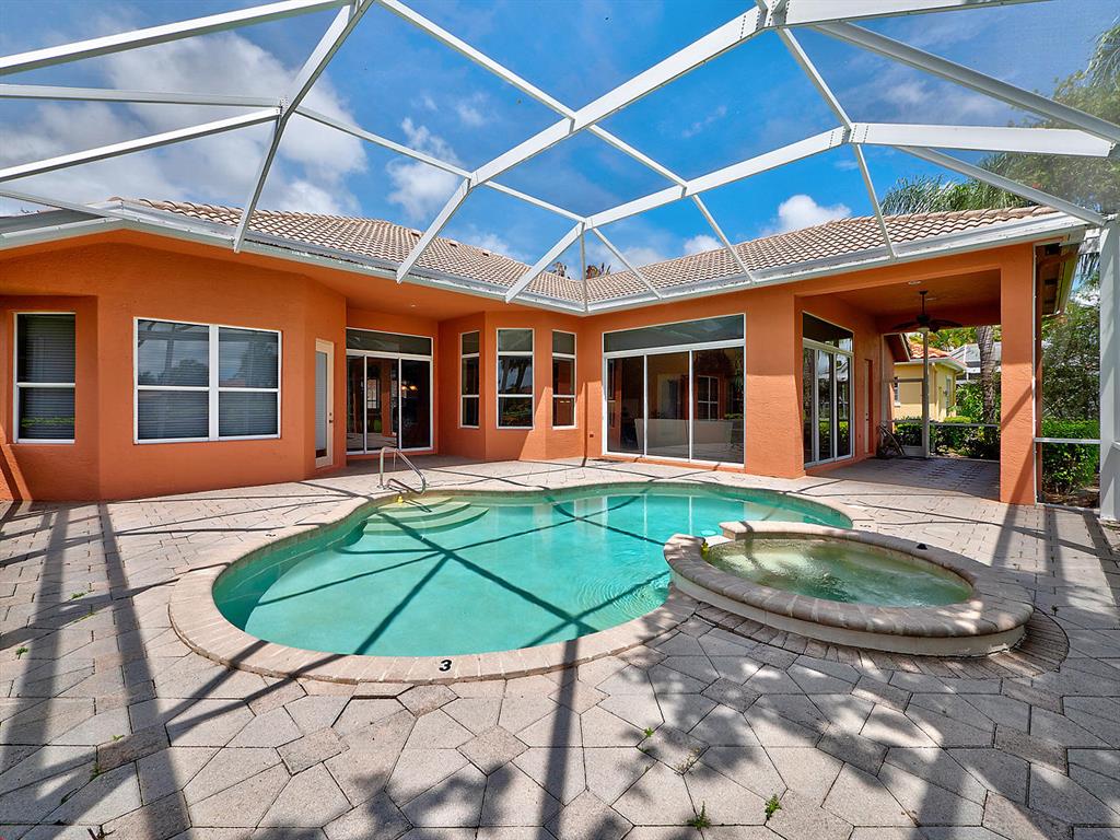 4 Bedroom Extreme Ibis Value! 4 Bath, plus A Den, Pool with Spa and a Two Car Garage with Golf Cart Storage. 3,000 Square Feet and The Perfect Floor Plan. The Exterior recently painted. Family Room, Nook, Living Room and Master all overlook the Pool/Patio onto The Heritage Course #8. The Kitchen is Spacious with abundant Counter Space, Gas Cook Top, Double Wall Oven, Pantry and Coffered Ceiling with High Hats. The Family Room has 2 Sets of Triple Sliders to the Screened Pool Area. The Master is Oversized with French Door to Patio, and the Master Bath has a Whirlpool Tub and Shower with Double Shower Heads and 2 Glass Door Entries. One Spare Bedroom is secluded in the back of the home, the other 2 in the Front of the Home. The Patio has 2 Covered Areas, perfect for Entertaining.