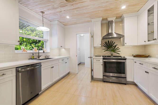 Charming, well-maintained home with divine wide water views of sunrise overlooking direct intracoastal waterway in the SOSO neighborhood (South of Southern (Blvd)).Quiet neighborhood . Cruise up the waterway from your private, security gated dock with boat lift . Come home to your completely remodeled elegant kitchen to prepare and enjoy a wonderful meal, SS appliances, new cabinetry, counters, fixtures and flooring. Spacious laundry room with great storage. Wind down on your back deck patio overlooking a private and fully fenced lush tropical landscaped yard. . Home freshly painted inside and outside. Split bedrooms with master en suite . Newer A/C, flat roof, impact windows and doors and remodeled second bath. Very deep lot...room to extend living area if desired!