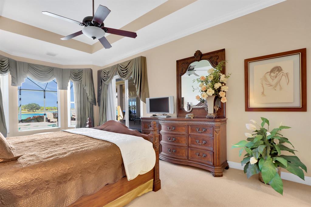 WATER, WATER EVERYWHERE-wide water views form the entrance, living room, family room, study and master bedroom. Located on a lot with a $90,000 upgrade, this 3BR/3BA/Den home is a rare find. Gently lived in home with Accordian shutters, a new pool heater for the oversized pool and spa,Jandy pool system, new garage door equipment,and is decorated neutral in tones. Stainless appliances, double ovens, wood cabinets, granite counters, pullouts in cabinets , an oversized full screen enclosure are just some of the features of this home. Also,3 closets in Master BR, Jacuzzi tub,blackout drapes,sitting area in Master,crown moldings throughout,closets all done, central vac ,water taken from lake that saves on water bills for plantings. This one owner home breathtaking in so many respects.