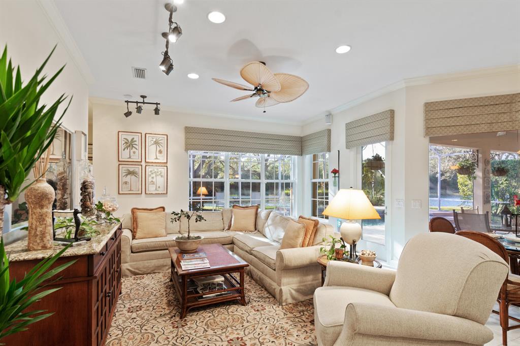 Highly sought after but rarely available, this beautiful Breakers West home is now for sale INCLUDING THE BREAKERS OCEAN & GOLF MEMBERSHIP. Located in popular Breakers Pointe area, this lakefront home offers 3 Bedrooms + Office, 3 Baths and a gorgeous patio with pool & spa for enjoying the Florida life-style. Easy to maintain as HOA includes the care of the landscaping, exterior painting, security, basic cable & alarm monitoring. Open to the Family Room is the UPDATED WHITE KITCHEN and features stunning marble counters, glass tile backsplash, stainless appliances including wine refrig & center island. Handsome Office has custom built-in bookcases w/file drawers plus built-in desk. Relaxing Master Suite overlooks the pool and boasts HIS & HER MASTER BATHS which have been