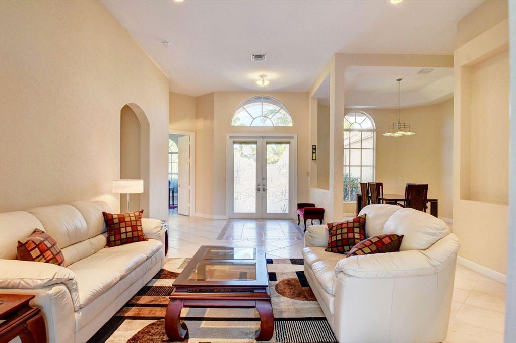 This gorgeous home in prestigious Fox Ridge is nestled on a private Cul-de-sac with large 3 car garage. This custom masterpiece is big, open and bright features 12 foot ceilings and triple split floor plan. Home has 5 bedrooms with one convereted into a private office and 3.5 bathrooms. Spacious kitchen with new appliances opens to large family room and breathaking pool. The back yard is every homeowners dream with a large, inviting pool, tropical lush landscaping and a covered patio area perfect for entertaining. Master bedroom suite features his and her walk in closets and large bathroom with double sinks, roman tub and shower. Two large bedrooms share a Jack and Jill bathroom with separate shower area. The large guest suite offers a private bathroom and separate entrance...