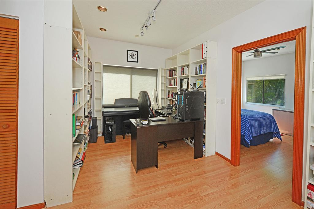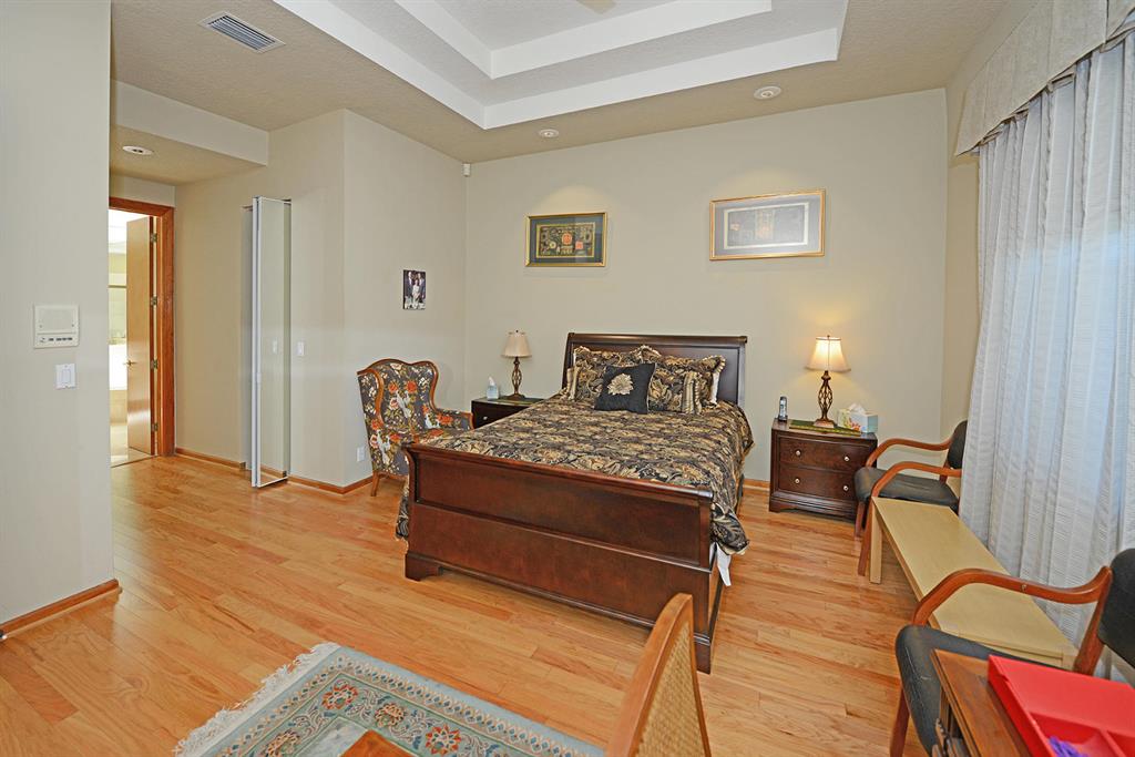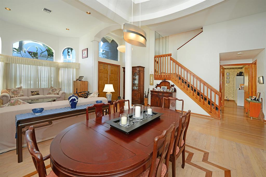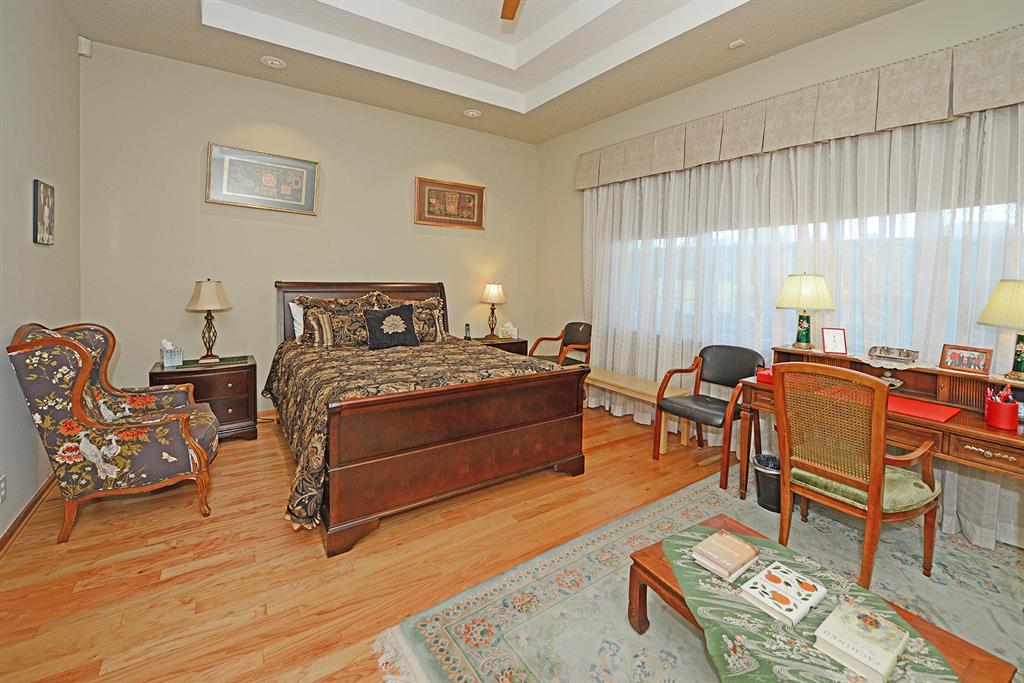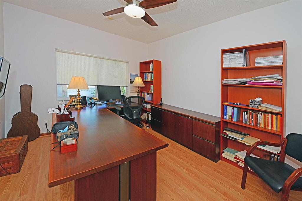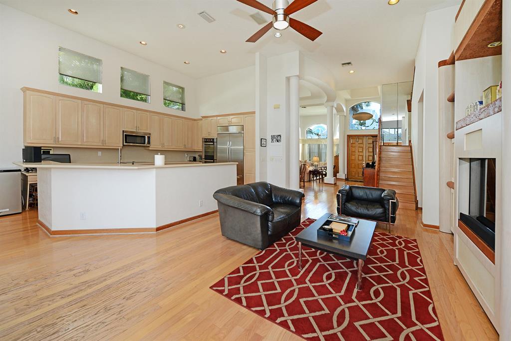 **DON'T SWEAT THE VIRUS. THIS HOME IS VACANT AND VERY EASY TO SHOW**. Inviting views of the golf course and lake, this 4 bedroom (master downstairs) + office home with 3 and a half bathrooms features hardwood floors and volume ceilings. In the Hamilton Place section of Woodfield Country Club, features includes an open kitchen with 42'' oak cabinetry and stainless steel appliances and full hurricane protection with electric roll down shutters. Brand new 80 gallon hot water heater and new dishwasher. Screened in pool and patio area overlooking the golf course.