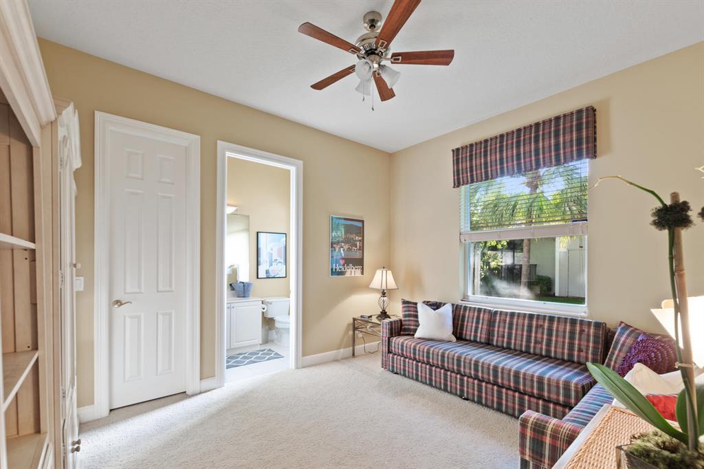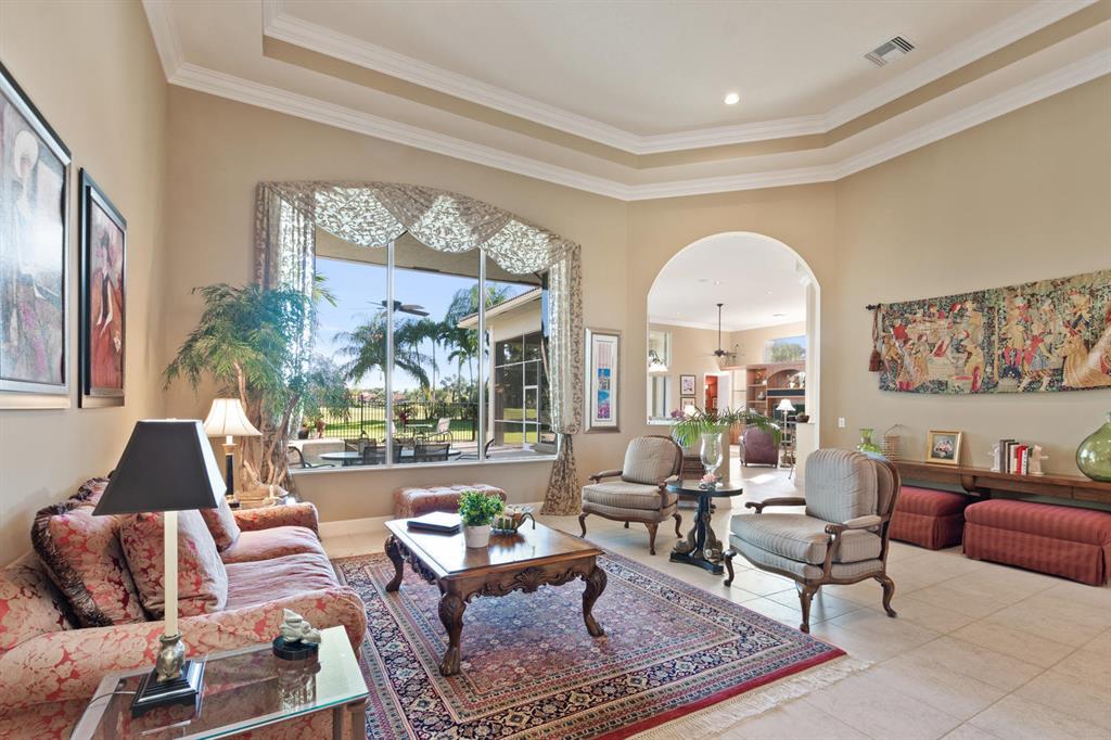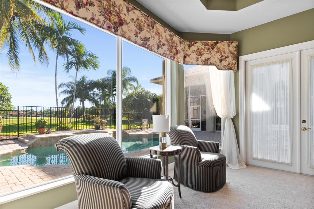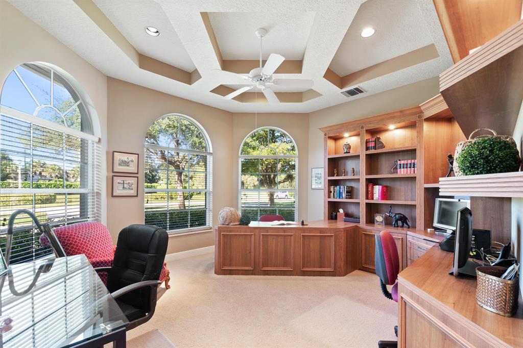 How would you like a one of kind golf & water view welcome you home each day? Lovely Breakers West custom home boasts sweeping water and fairway views of the 11th hole of The Breakers Rees Jones Course. Lovely 3 BEDROOMS + OFFICE, 3 FULL BATHS & 2 HALF BATHS and 3 CAR GARAGE. Tastefully appointed w/coffered ceilings & crown molding, this home has beautiful large windows to take in the amazing views. Double doors lead into the spacious Master Suite with His & Her custom fitted walk-in closets and sitting area w/French doors. Master Bath has 2 vanities, spa tub overlooking privacy garden & separate walk-in shower. Located near the Master Suite is a Powder Bath and handsome Office featuring coffered ceilings w/crown, built-in bookcases & 2 built-in desks.