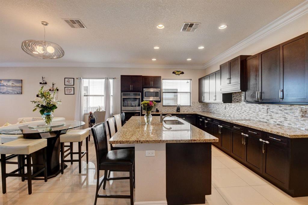 Beautiful 5/4.5 +den in Boca Reserve, new construction built in 2014 by Minto. Enjoy the spectacular lake front view while swimming in a saltwater heated pool under the screened in patio. Kitchen equipped with oversized island to assist in cooking and walls are decorated with fabulous back splash. Gorgeous wood flooring line the hallways into carpeted/wood floor bedrooms. First floor hosts in-law suit with home office or playroom. Find the master suite on the second floor with double walk in closets. Every turn expands on the detail and value this home has to offer. Come see what Boca has to offer!