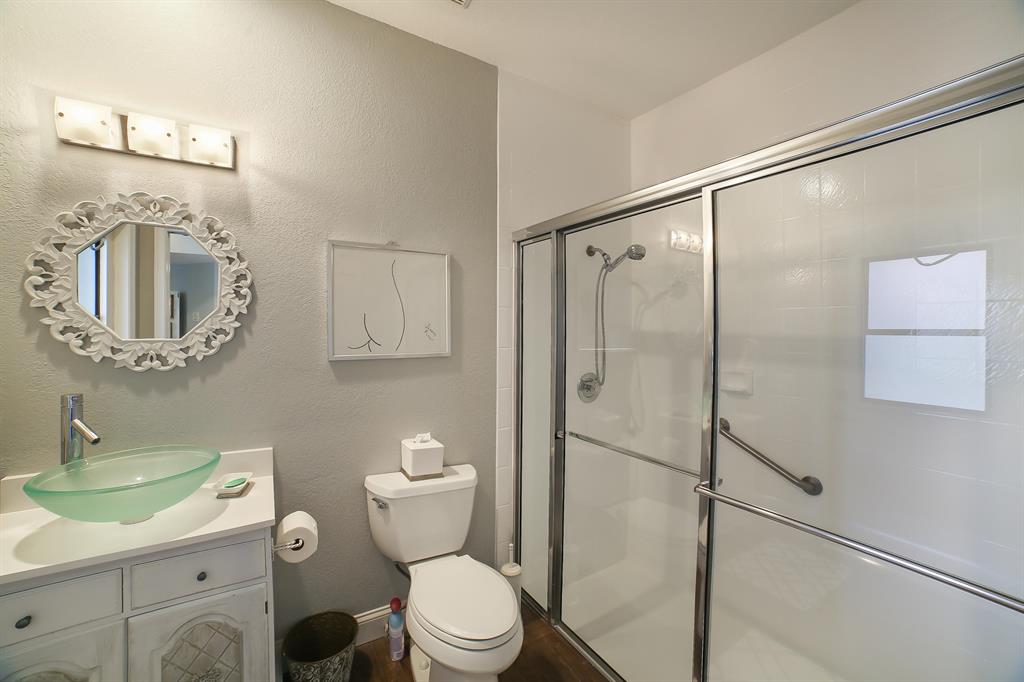 STUNNING ONE FLOOR REDONE HOME IN LA CORNICHE. Just bring your furniture because everything has been updated to make you relax------no worries about this home with construction. Roof, hurricane shudders, impact windows keep you protected....no popcorn ceilings and renovated kitchen, all baths, cabana, guest bedroom, laundry room, new bar, landscaping, and so so much more. This is 3 bedrooms but one of the big bedrooms could have the wall put back in and then it would be 4 bedrooms. This is a one of a kind home in La Corniche that backs up to Parkland. Membership optional.