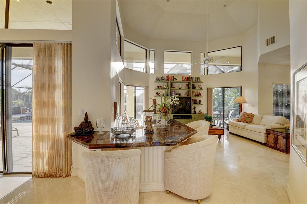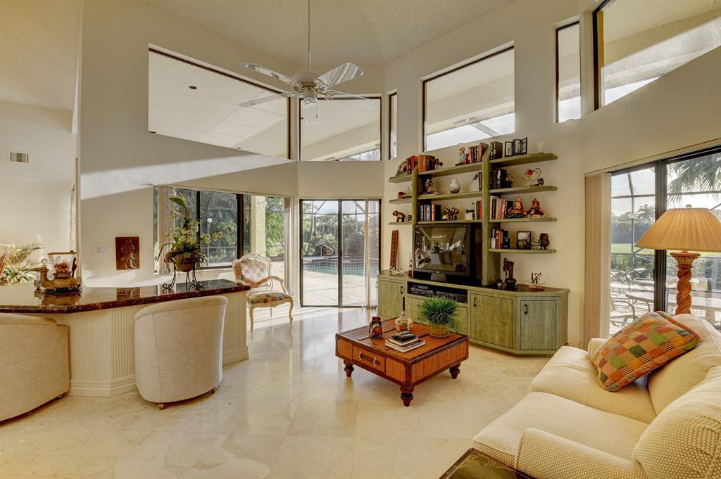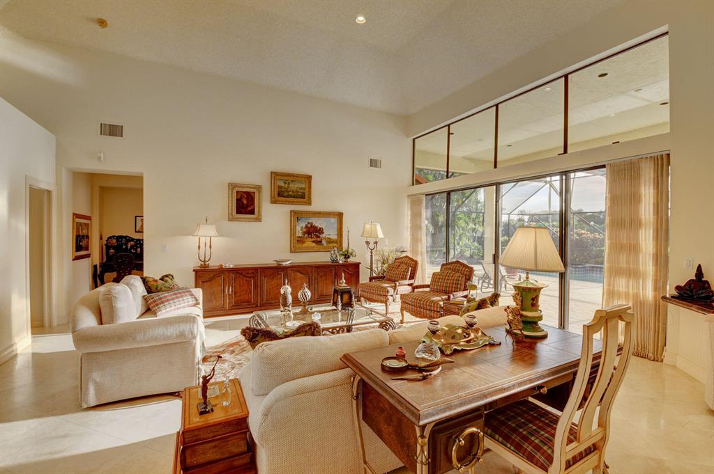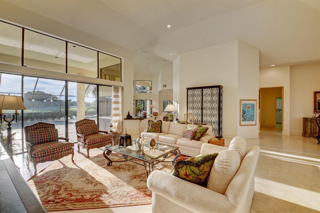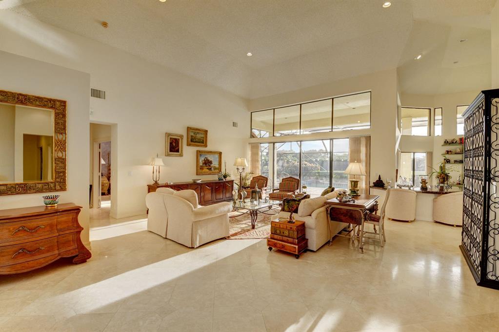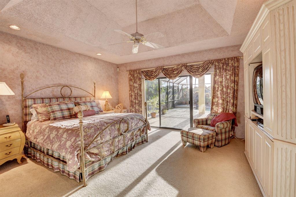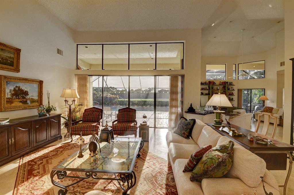 GOLF LEVEL MEMBERSHIP AND EQUITY REQUIRED. MINIMUM AMOUNT $75,000 DUE ON OR BEFORE CLOSING...THIS AMOUNT CANNOT BE FINANCED. Absolutely Amazing waterfront lot & interior location offers stunning views and some privacy from neighbors. Fabulous swimming pool with spa and direct LAKE & GOLF VIEWS. Master suite features 2 master baths (one features access to the large screened lanai) connected by an oversized Jack and Jill shower. Large closets with tons of storage. This home has 3 bedrooms - one currently used as a den/office, 3.5 baths, volume and cathedral ceilings, 2.5 car garage, large laundry room with sink and cabinets, circular drive, mature landscaping, and huge screened pool enclosure perfect for entertaining. Upgrades include: water heater 1 year old, AC #1 replaced (MORE)