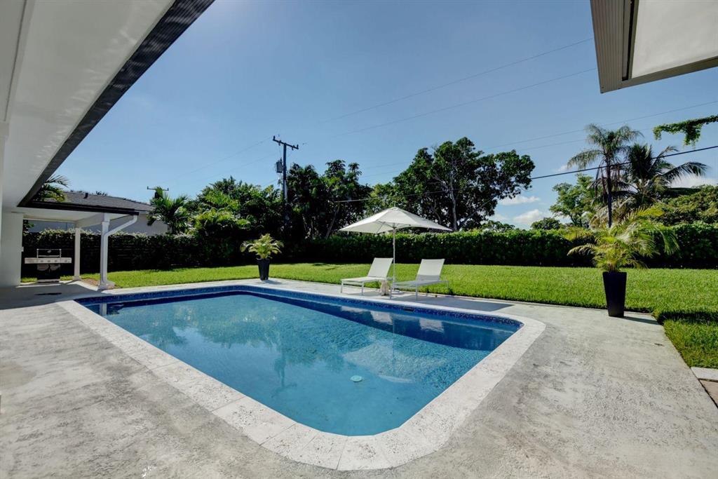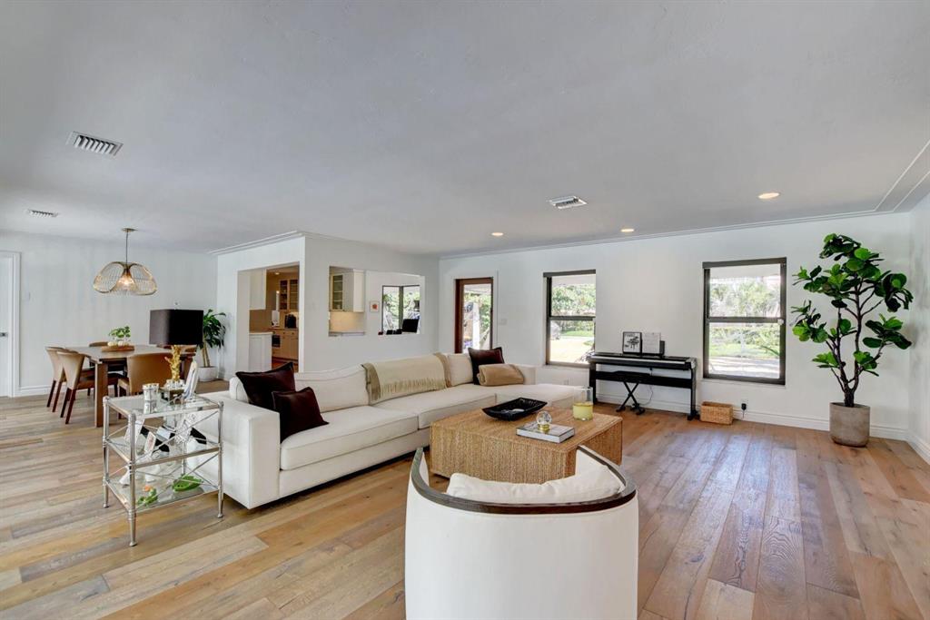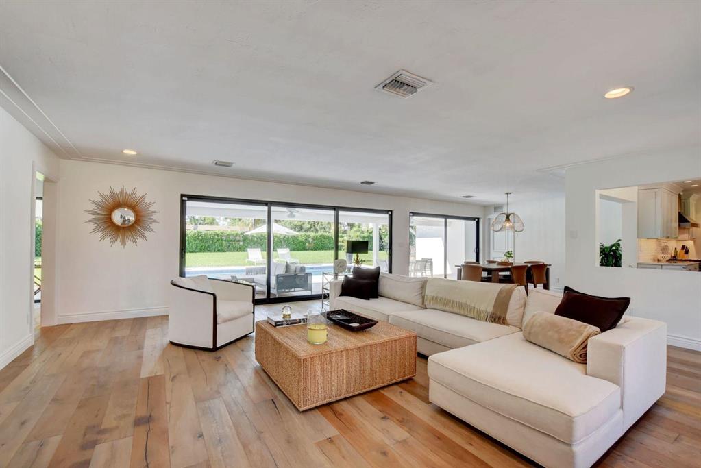 Fully renovated beach home with wood floors, marble kitchen and baths and complete impact windows and sliders. One block to the beach on beautiful tree lined street in The Estates. Huge yard with salt pool and room to add on to the front or the back. Bike or walk to restaurants and shops.