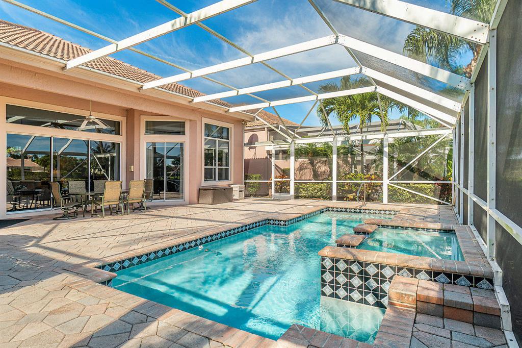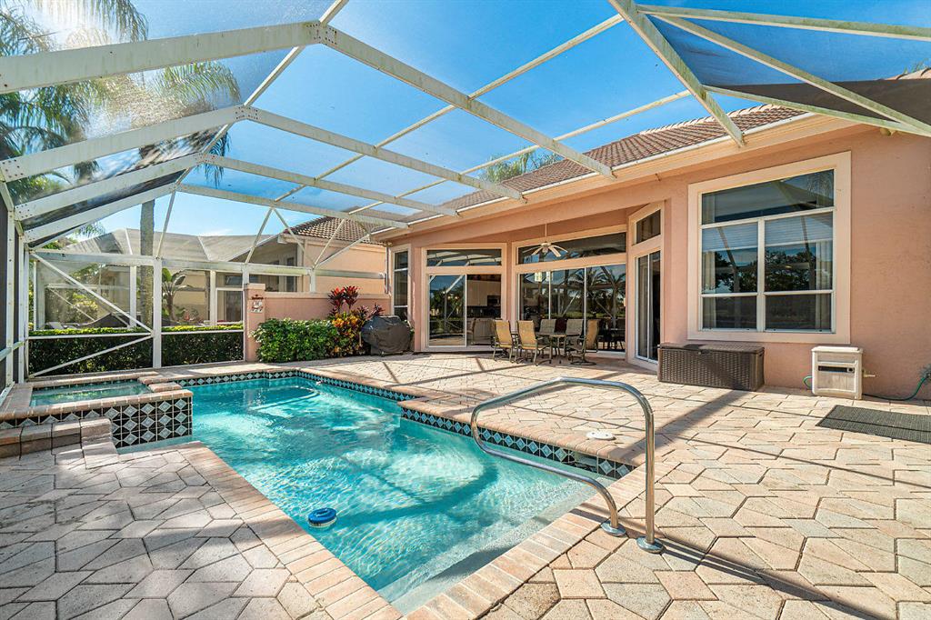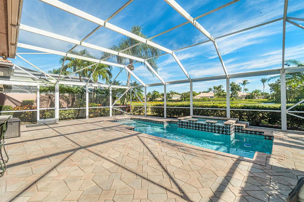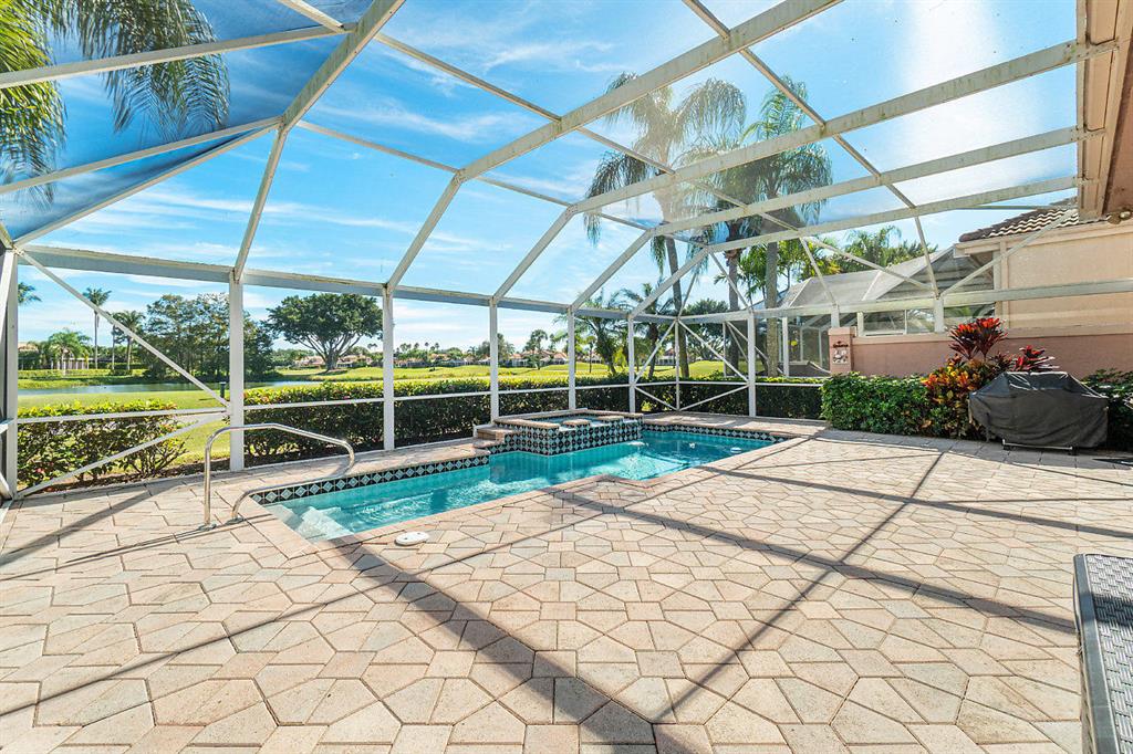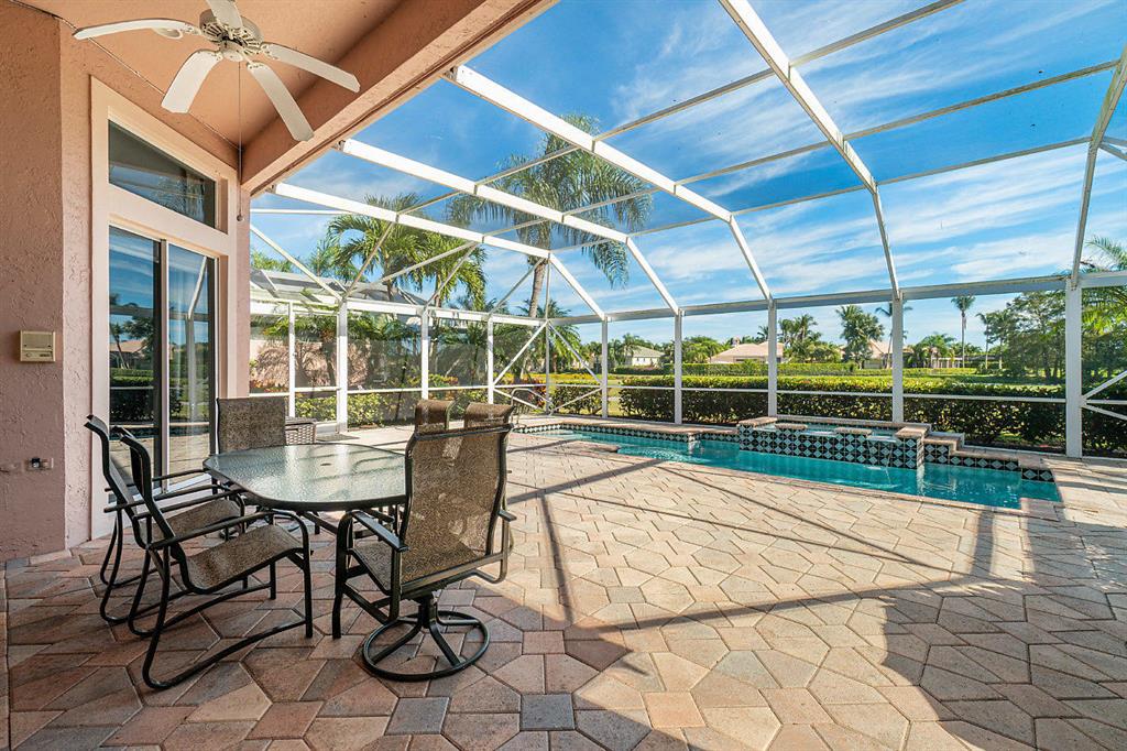 NEW ROOF!!! NEW ROOF!!! NEW ROOF!!! 3 Bedroom / 3 bath home with golf and water views AND a private pool/spa. Perfect location...near the front gate and down the street from the club! This home is scheduled to be painted white with grey trim and new front doors have been ordered. Rarely available ''Astor'' model in Falcon Green. Open layout, super bright with Eastern exposure, fantastic wet bar with wine refrigerator and lots of storage, stainless appliances in kitchen, neutral colors and window treatments throughout. Huge screened patio with pool/spa. Beautiful golf and water views, down the street from the club and did I mention...NEW ROOF!!!