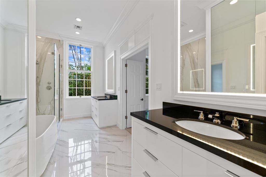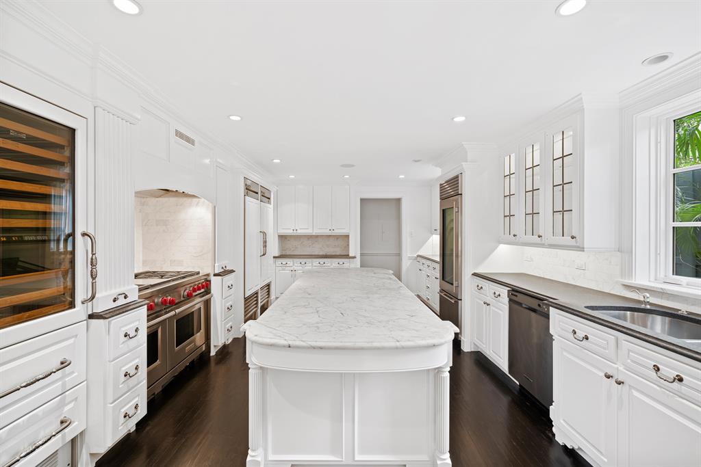 Reimagined by the esteemed Wittmann Builders Corporation, this Clarence Mack Regency home features soaring 12-foot ceilings and grand proportions. Enjoy elegant finishes throughout including solid ebony wood floors, a chef's kitchen with marble countertops and Wolf & Sub-Zero appliances, new impact windows, and a full house generator. French doors lead to the meticulously manicured garden featuring a large covered loggia, a 40-foot swimming pool, and a separate pool cabana with a built-in grill and full bathroom.