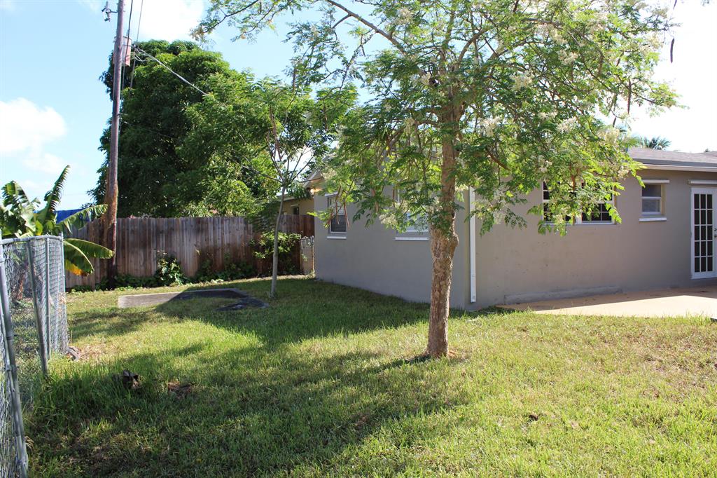 Immaculate 4 bedrooms 2 bathrooms 2 car garage single family home settled in a prime location of West Palm Beach. The split floor plan provides peace and serenity with a spacious living room with French doors that lead to a wide-open porch for outdoor gatherings. Children and paws-friendly perimeter fenced backyard that provides added outdoor bonus. The yard features natural organic fruits plants, mango, avocados, moringa, banana, aloe, and plum tree. All the rooms are spacious with fans, new water heater, tile floors throughout for easy maintenance, alarm system set up, and smoke detectors: stainless steel appliances, granite countertop, and tile backsplash in the kitchen. The expansive driveway with a two-car garage can accommodate plenty of parking. The location is a commuter's dream