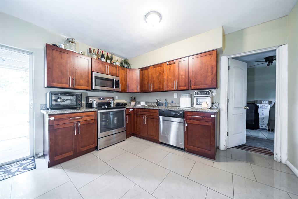 Nice home on double lot. Newer kitchen with granite counters, stainless appliances, wood cabinets. Recently updated bathroom vanities, A/C, all tile floors, more. Leased month-to-month. Tenant will consider staying.