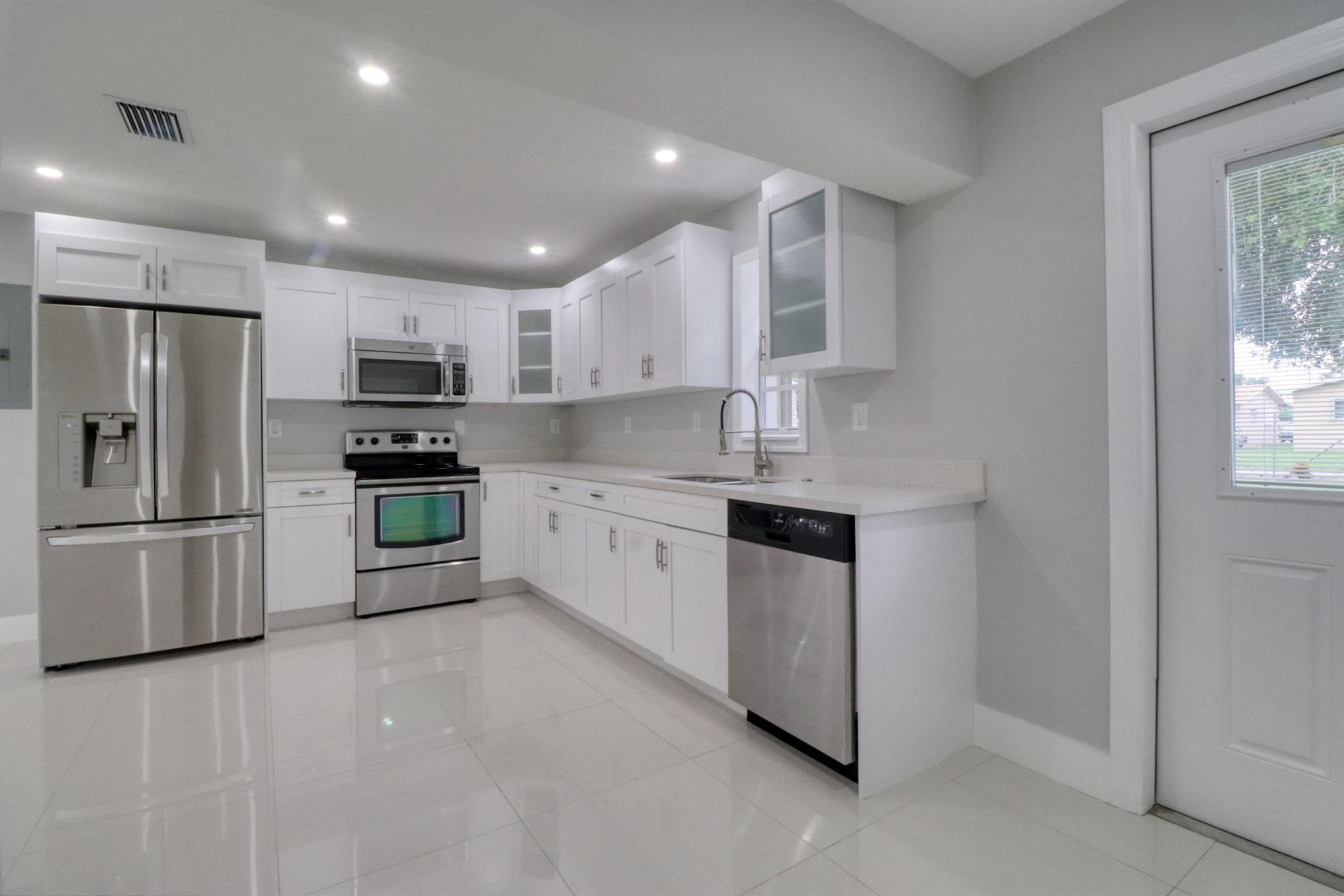 Beautifully remodeled 3br/2ba home with a spacious open floor plan. Porcelain floor tiles, Newly remodeled bathrooms, New wood Kitchen Cabinets with Quartz counter top, Stainless Steel appliances will be installed, LED lights throughout, Brand new A/C system. New tankless water heater. Has a laundry room with washer & dryer hookup. Has a large backyard with a separate alleyway entrance gate in the rear with a double wide driveway. Has a concrete foundation in place for a shed. Property also boasts Accordion Hurricane shutters. . Use link for virtual tour: https://youtu.be/4_b0Eu73_xo