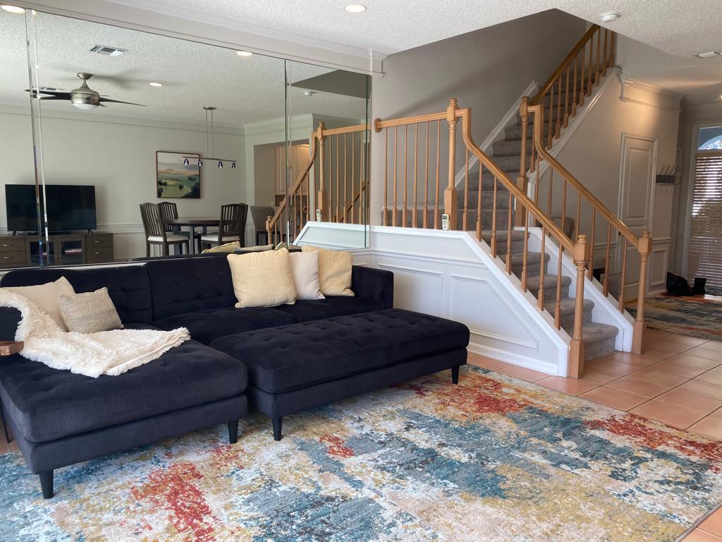 Beautiful Lakefront Townhouse, updated Kitchen with Granite Counter Tops, White Wood Cabinets, SS Appliances, Pantry, and Breakfast Bar. Water Views from Living and Dinning area. Screened Patio. Custom Windows and Crown Molding, Tile floors throughout the first level and Brand New Carpet in Bedrooms and stairs. Split floor plan, oversize Master Bedroom have a space for Home Office, Large walk in closet, high ceilings and windows that bring a lots of natural light. Master Bathroom has a separate shower and hot tub, double sinks. Other Bedrooms very good size & closet space. Laundry Room. Fresh Painted, very bright and modern. Furniture is Optional. Community has Newer Roof, Gutters, Fresh Paint. Great Location! next to Swim & Racquet Center, Town Ctr Mall, Excellent A+ Schools. Call Agen