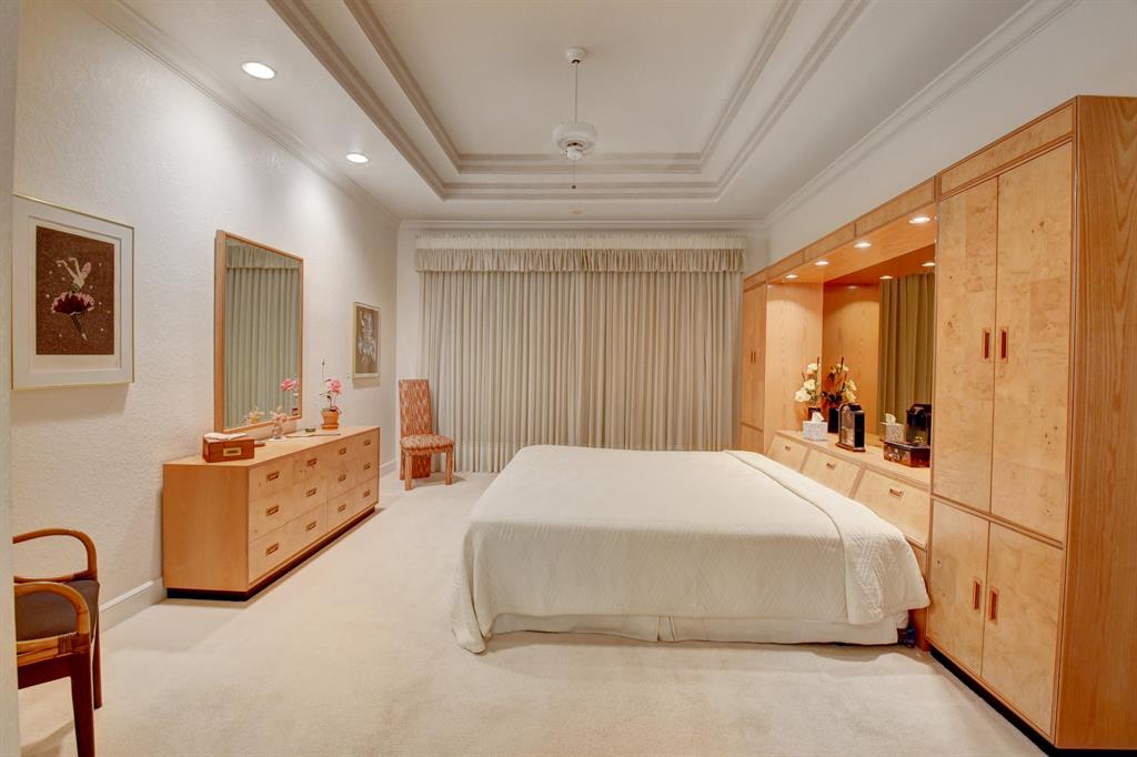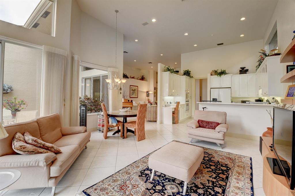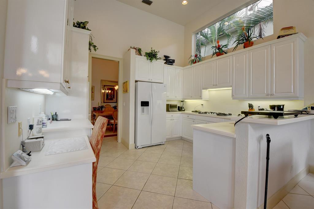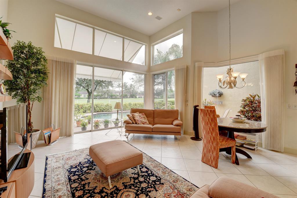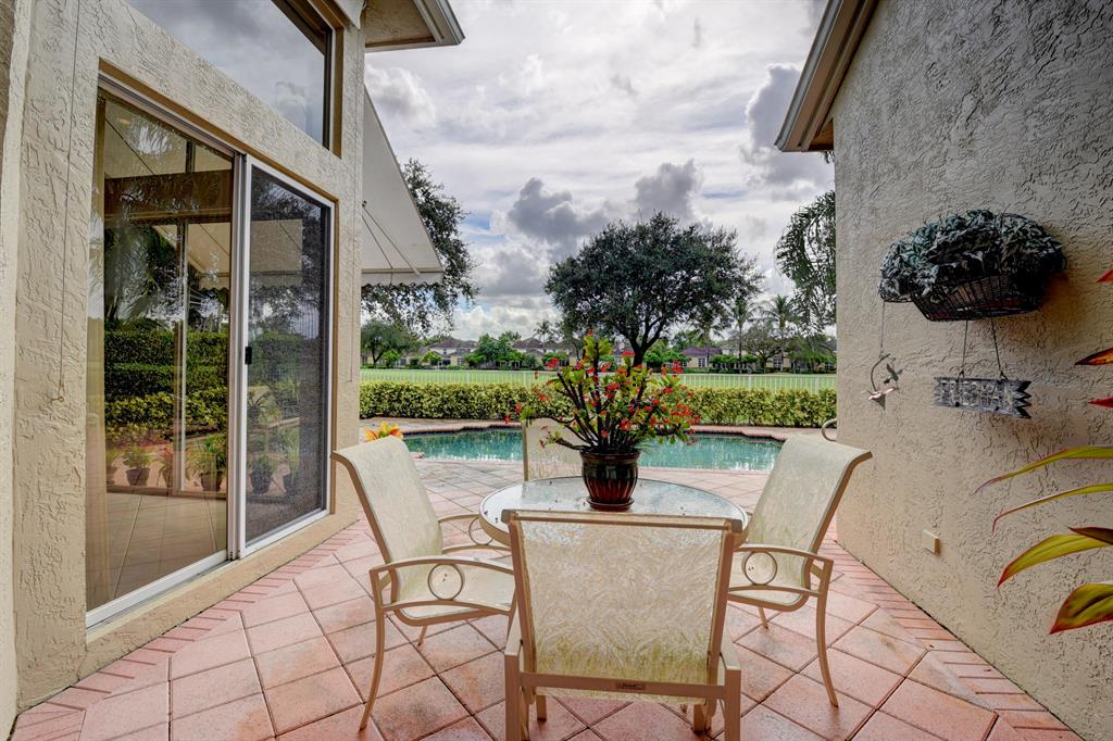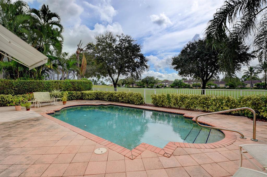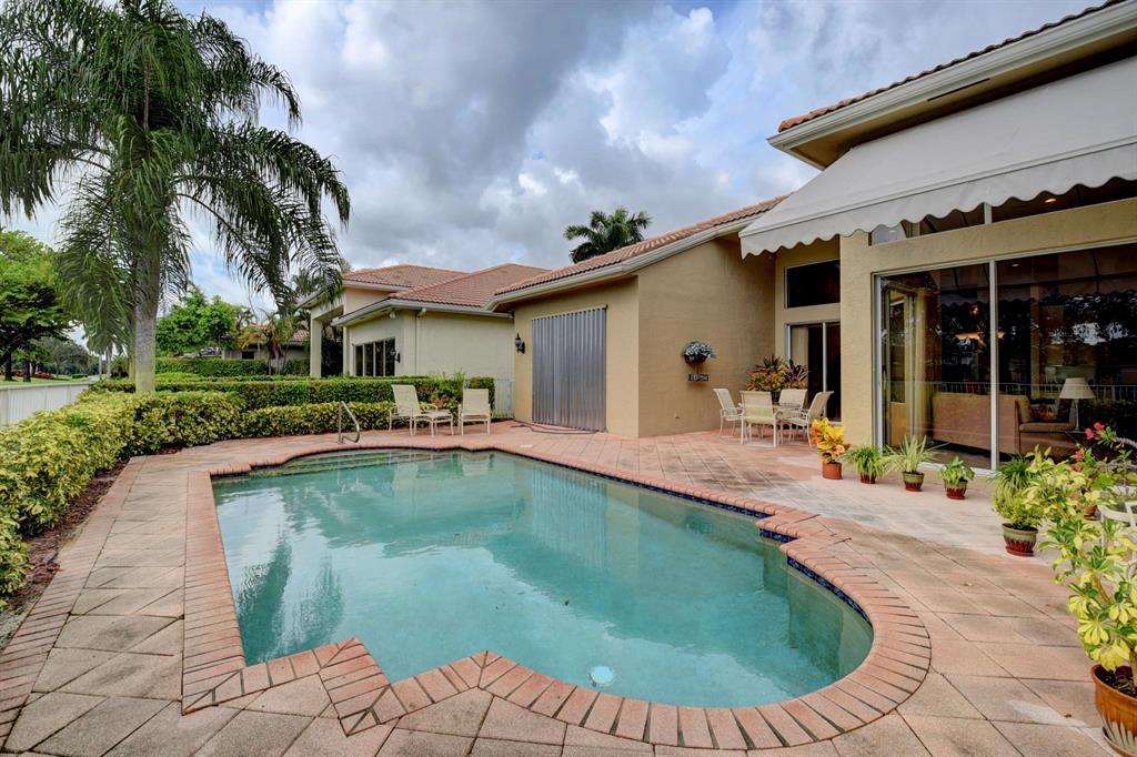 Club incentive: $22,500 towards standard membership! Don't miss this fabulous opportunity! Lovely golf course vistas fill this charming one-story home of 3 bedrooms & 3 baths with a double glass door entry featuring volume ceilings with speakers; neutral tile, carpeting & engineered wood flooring; white 42'' cabinetry & corian countertops in the kitchen; sold core doors: 2-zone air conditioning & central vacuum. The Master Suite offers crown moldings, 2 walk-in closets & a marble bathroom. To the rear, there is an open patio with a large pool & an awning for shade overlooking the golf course.