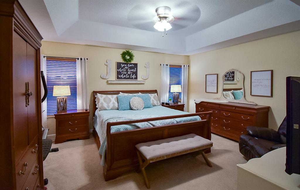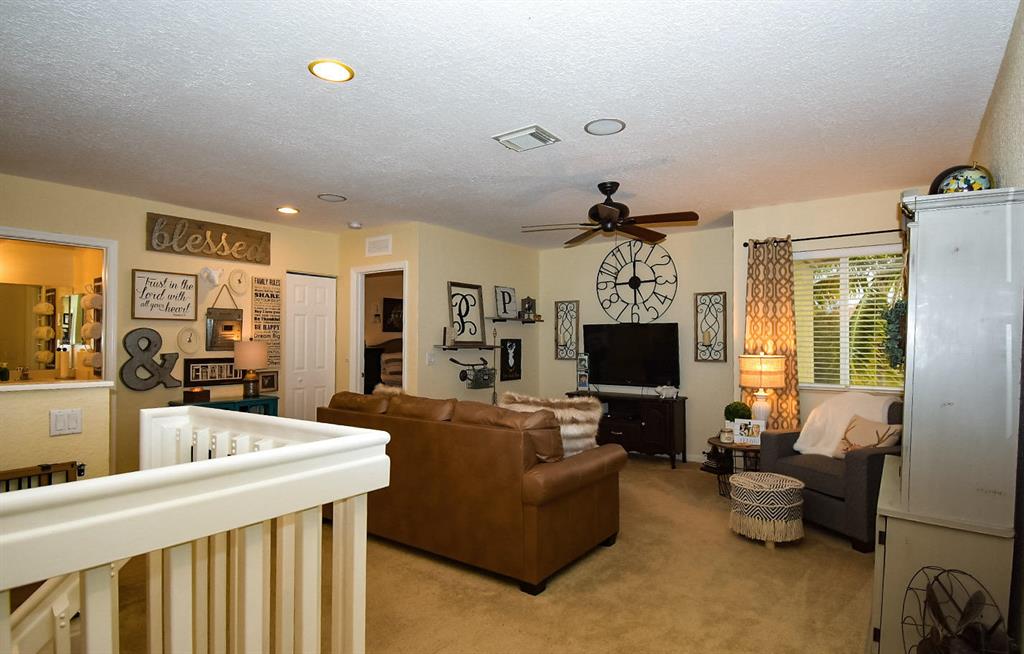 Stunning 2 story home with a fabulous floorplan & a beautiful lakeview in lovely Terracina! This lovingly cared for home has lots of entertaining space, the tiled first floor includes a large living room, dinning room, breakfast area, kitchen with granite & cherry cabinetry & family room. The expansive open patio looks out onto the lake, with ample fenced yard space. Upstairs are 4 bedrooms, including the spacious Master Bedroom with a custom walk-in closet and a substantial loft area. Home comes with a one year home warranty that covers appliances, A/C, and electrical system, water heater purchased 2019. Don't miss this incredible home!