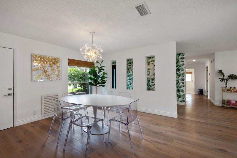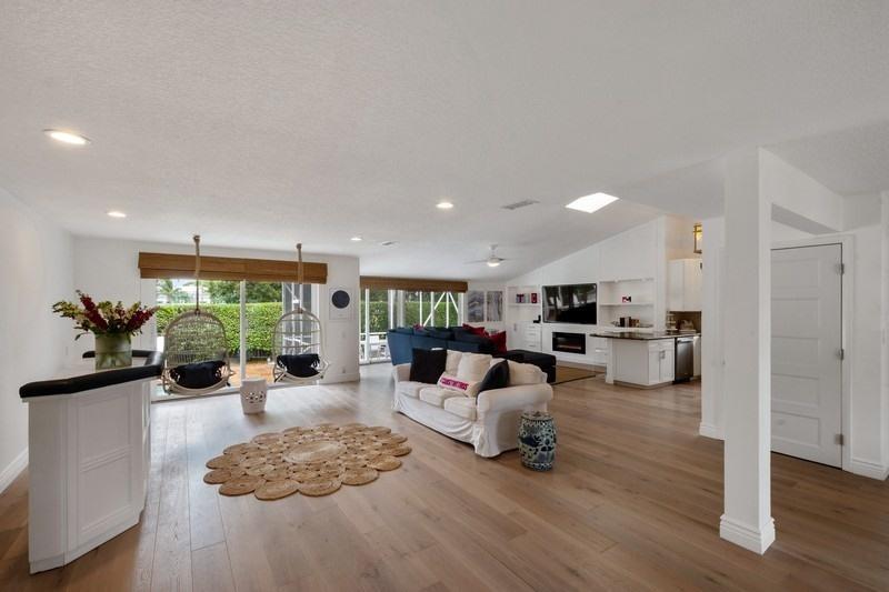 Beautifully remodeled Central Boca home in A+ SCHOOL DISTRICT. Located in a quiet neighborhood with NO HOA, this gorgeous home features an open and split floorpan with vaulted ceilings and skylight. The home boasts four bedrooms, three baths, a two car garage, a formal dining room and a large, flexible living space with open kitchen. The expansive master bedroom features his and hers walk-in closets and sitting area. Updates include new hardwood floors throughout, completely renovated kitchen and bathrooms, a custom built-in entertainment center with fireplace, new appliances, new hot water heater, new A/C, and custom window treatments (including blackout shades) throughout. This home is situated on an oversized lot and boasts a beautifully landscaped yard,