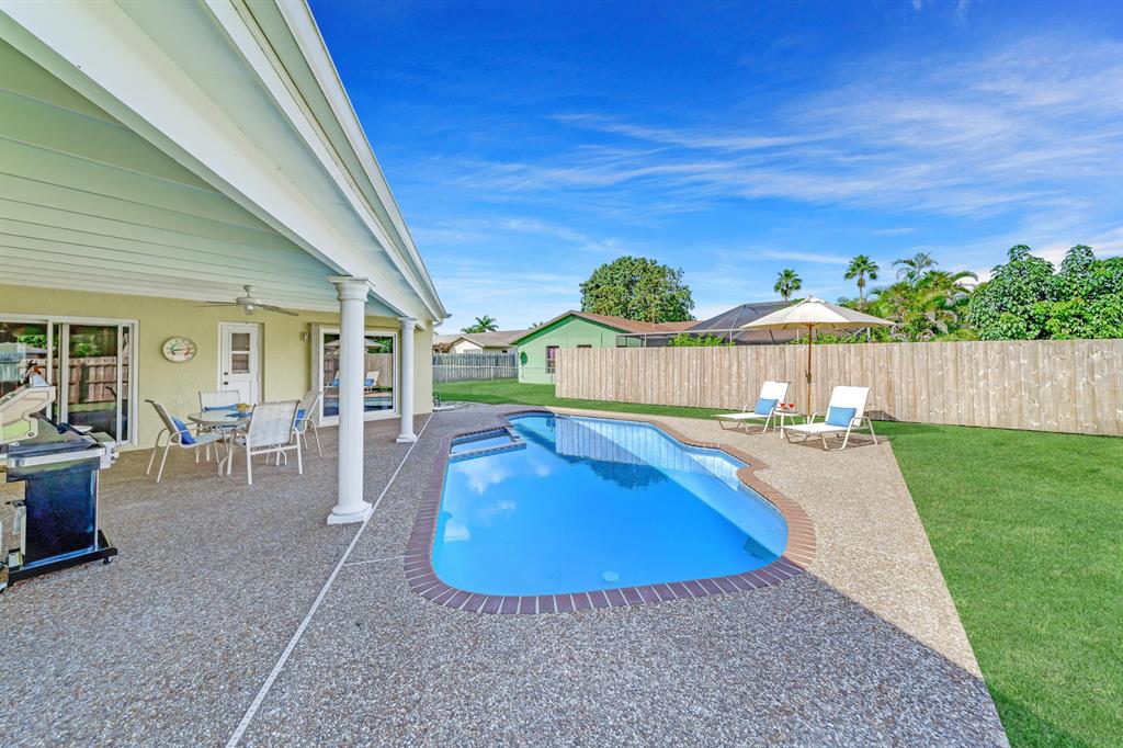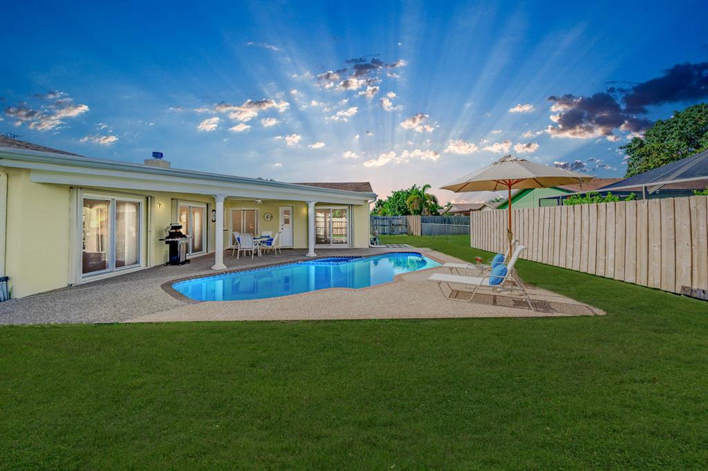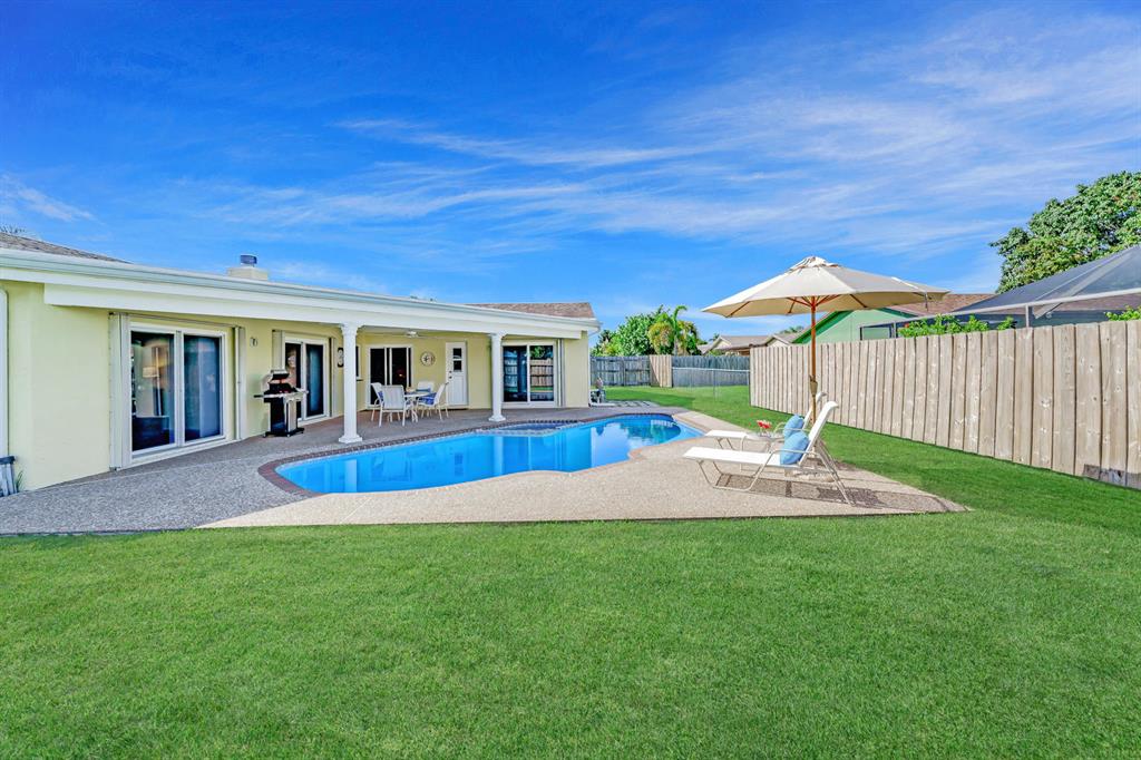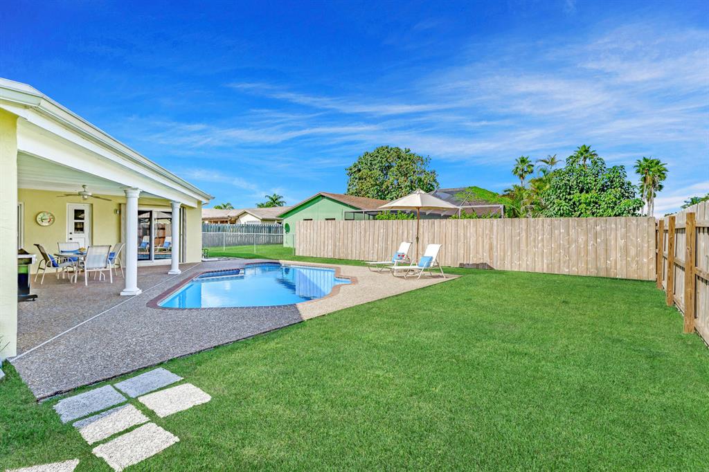 WOW! Located on a huge 7,868 square foot corner lot in Sandalfoot Estates East, this meticulous & spacious home features 3 bedrooms, 2 baths, an oversized 2 car garage & fenced in backyard with an amazing pool! Upon entering, enjoy the sense of space in this one story home with 1824 square feet under air and 2683 total square feet. Impact Hurricane windows and doors include 10 impact windows & 5 impact doors (Includes cabana bath door & 4 sliders), plus Accordion shutters on 3 sliders for double protection (in addition to the hurricane glass). Garage side door impact as well. Large kitchen with a tons of counter space, tile flooring, pass thru window to patio, Eat-in kitchen/Breakfast area, recessed lighting & a pantry. Large tiled family room just off the kitchen. Formal dining room