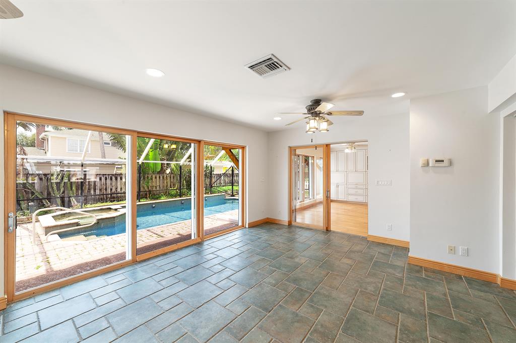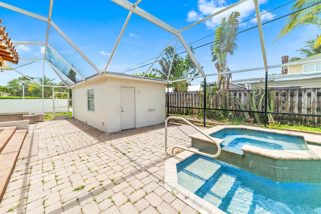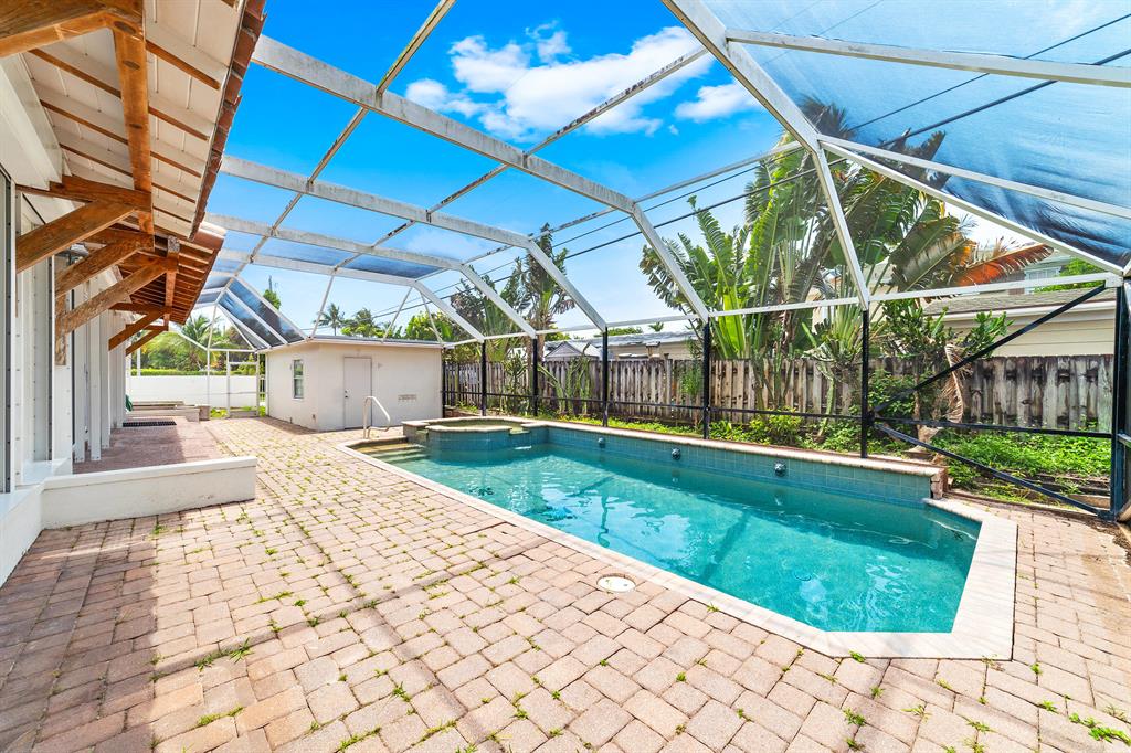 Rare Opportunity! LOCATION! LOCATION! LOCATION! Spacious POOL home located just over a block from the Intra-Coastal. Situated on an oversized corner lot, this 4 bedroom, 3 bath home offers a sprawling floor plan with over 3100 square feet and a canvas ready for your personal touch and upgrades. Large updated kitchen with granite countertops, island, double ovens and a custom wall of cabinets and drawers for optimal storage. Light and bright Florida room features sliding glass doors equipped with electronic hurricane shutters, custom grill and wet bar and opens out to the screened patio with a private pool and spa. One car attached garage and a 1 car detached garage with separate entrance. Truly a gem!
