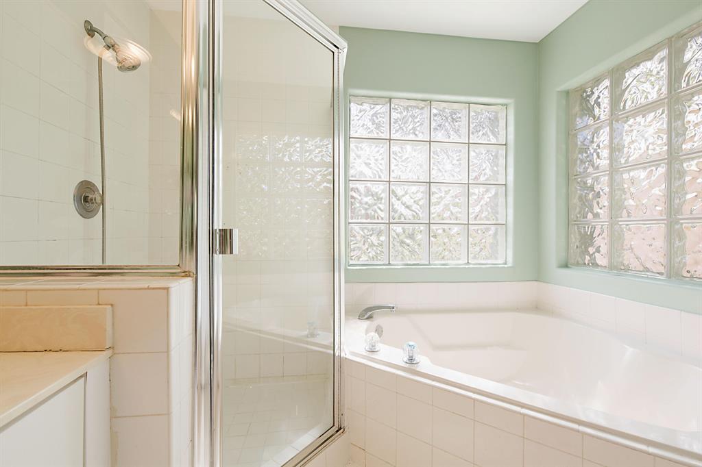 Come see this rarely available 4 bedroom 3 1/2 baths, courtyard home that has a seperate guest house with full bath which can be used for an office, in-laws or nanny's suite or excercise room. This beautiful home has updated kitchen with stainless steel appliances, granite countertops, and tumblestone marble backsplash. Eat in area off of kitchen and family room. Laminate wood flooring throughout living areas. Beautiful extensive crown molding everywhere!! HUGE master bedroom with amazing walk in closet, vaulted ceilings, plantation shutters, plus a large wall closet. Master bath has a roman tub, separate shower, double sinks and separate water closet. There is a nice loft area off of master bedroom that is great for a small office or play room.