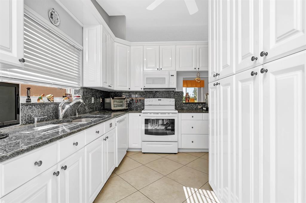 3 BEDROOM 2 BATH EXTENSIVELY REMODELED. 22'' ON DIAGONAL NEUTRAL ITALIAN TILE THROUGHOUT. KITCHEN REMODELED WITH GRANITE COUNTERS & CUSTOM CABINETRY. EXTRA CABINETS AS WELL AS DOUBLE PANTRY.NEWER APPLIANCES. BOTH BATHROOMS ARE REMODELED WITH GRANITE COUNTERS AND CUSTOM CABINETRY.BREAKFAST AREA IN KITCHEN. EXPENSIVE COMPOSITION GARAGE FLOOR. HUGE OVERSIZED COMPLETELY COVERED SCREENED PATIO. ROOF REPLACED IN 2006. AC IN 2016. HW IN 2015. GATED COMMUNITY WITH CLUBHOUSE,2 POOLS & TENNIS. 3rd bedroom is a convertible office. All it needs is a closet and door.