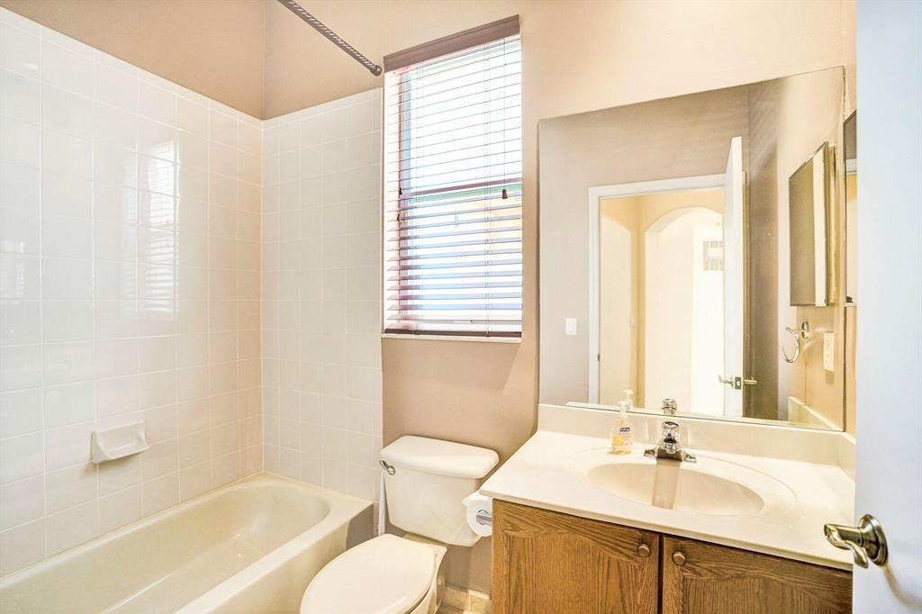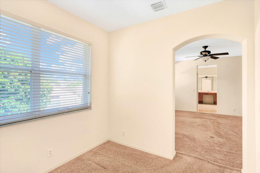 Lovely Lakes of Laguna home with den and loft features 2600 + square feet of living space, converts to 5 bedroom, granite counter tops and new disposal in kitchen, 3-car garage, new washer, new water heater, volume ceilings, electric fireplace, storage space below stairs, screened patio, fenced backyard, low HOA, gated community with security patrol.