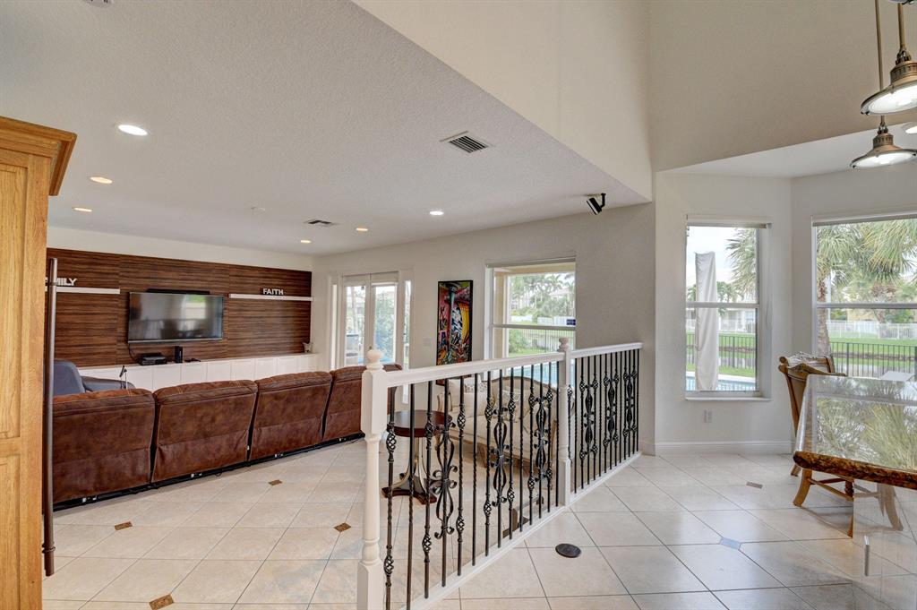 Enjoy this exquisite upgraded Savoy model in the sought after Boca Saturnia. Built and designed with pure elegance and warmth with a beautiful pool which features 4 bed 4. baths, 2 car garage on the nice lake in the community. The formal living area is warm and inviting with grand ceilings. Large gourmet kitchen which features, custom wood cabinets with pull-outs, granite counter tops, stainless steel appliances, opens up to a beautiful family room and large eat-in kitchen area overlooking the pool and lake. One bedroom on the first floor, mast and 2 bed on second. All bedrooms have upgraded wood floors, complete hurricane shutters. Great Boca schools and location