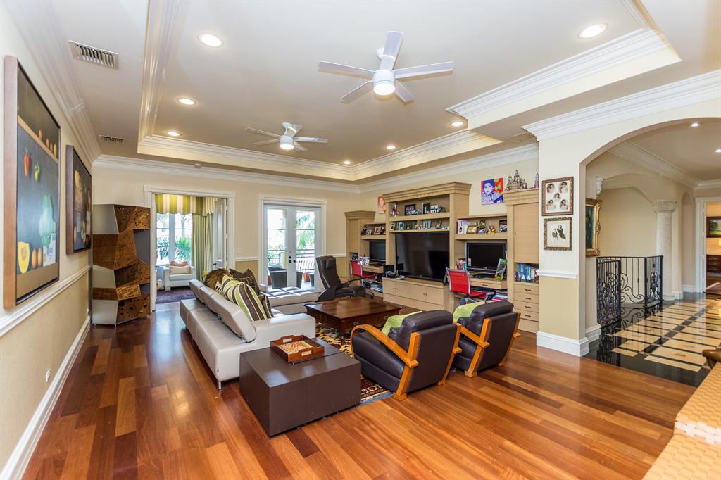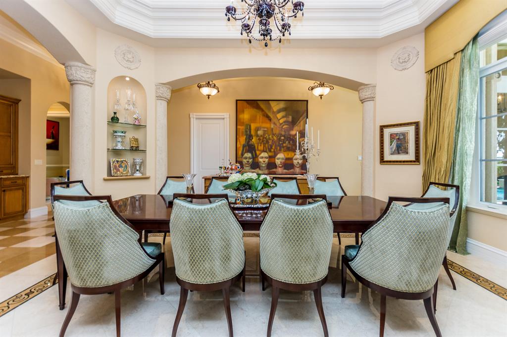 Magnificent estate home boasts exquisite custom finishes throughout, an impressive rotunda foyer with elegant circular marble staircase, dramatic formal living room and dining room all designed for effortless entertaining or casual living. A spectacular custom gourmet kitchen overlooking family room and views of loggia, resort style pool and golf course and lake views beyond. The information herein is deemed reliable and subject to errors, omissions or changes without notice. All measurements are approximate.