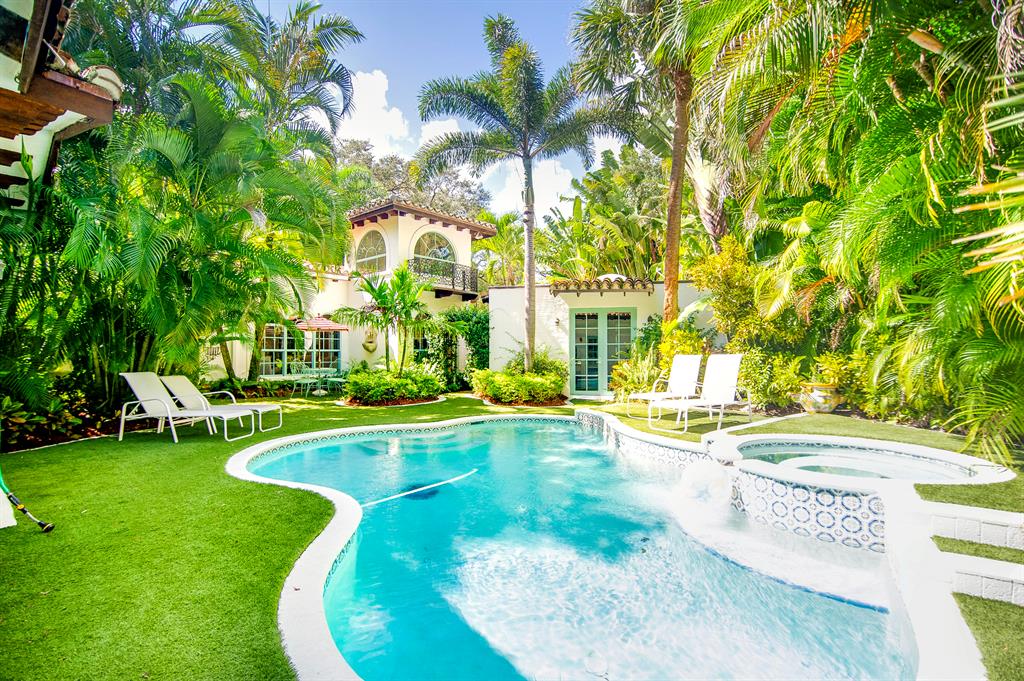 This incredible Old Floresta private oasis is situated on a secluded double lot, inclusive of two independent homes. The magnificent main house has been lovingly redesigned to offer the amenities of today while maintaining the nostalgic beauty of yesteryear. The architecture and attention to detail will captivate the most discerning homebuyer in this impressively beautiful estate. Comprised of approx. $3,000. sq.ft. this 3 bedroom, 3 full bath, main pool home is an entertainers paradise. From the pecan wood flooring with square dowel installation, to the soaring ceilings that include wood beams handcrafted by local artisans, and everything in between gives pleasure to the senses. The approx. 2,000 sq.ft. 2 bedroom 2 bath guest, in-law or rental home includes a private pool and rooftop deck